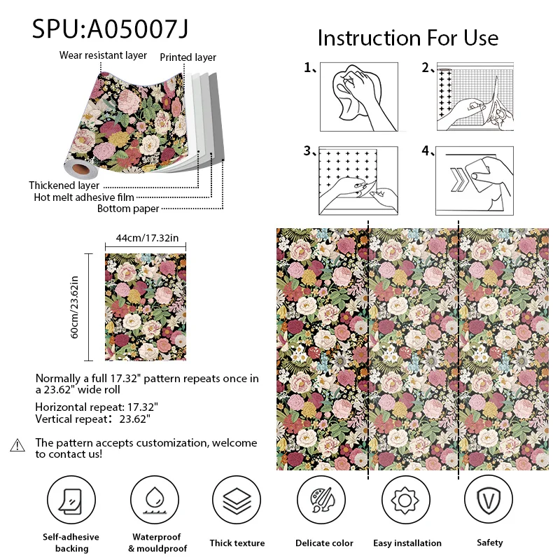 Material: Vinyl PVC Self adhesive Wallpaper