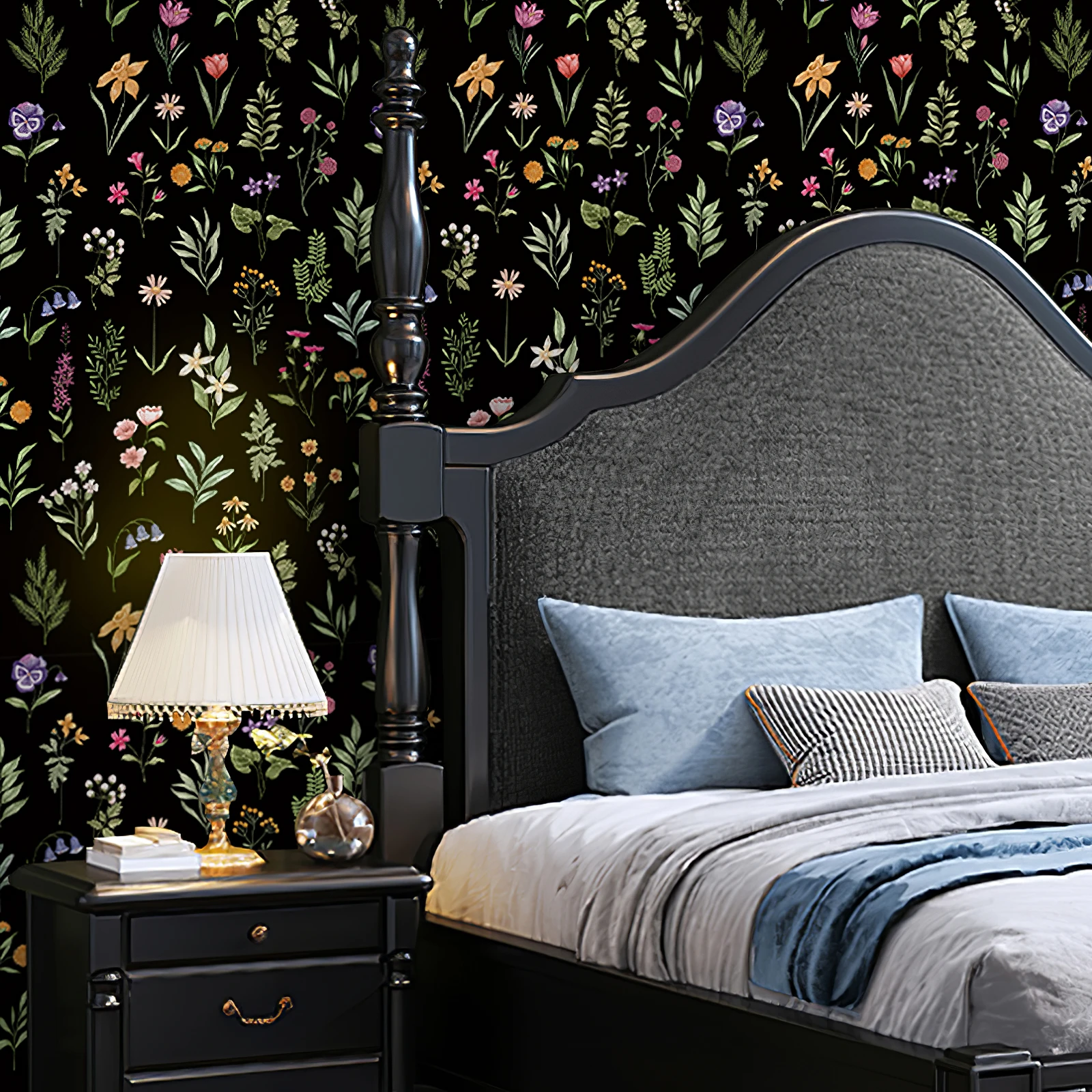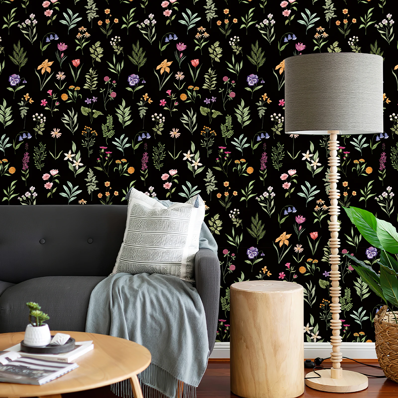 Black Crush Flower Peel And Stick Wallpaper
