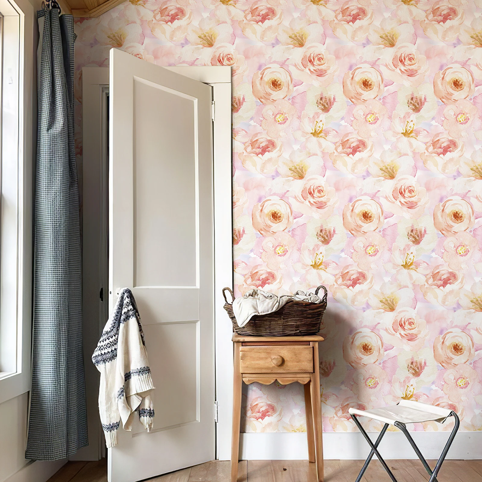 2. Apply Peel-Stick Wallpaper to the wall, beginning in the corner. (Do not peel all the backing all at once, peel off a few inches at a time, slowly stick it to the wall, and then continue to peel off a little more)