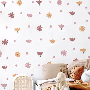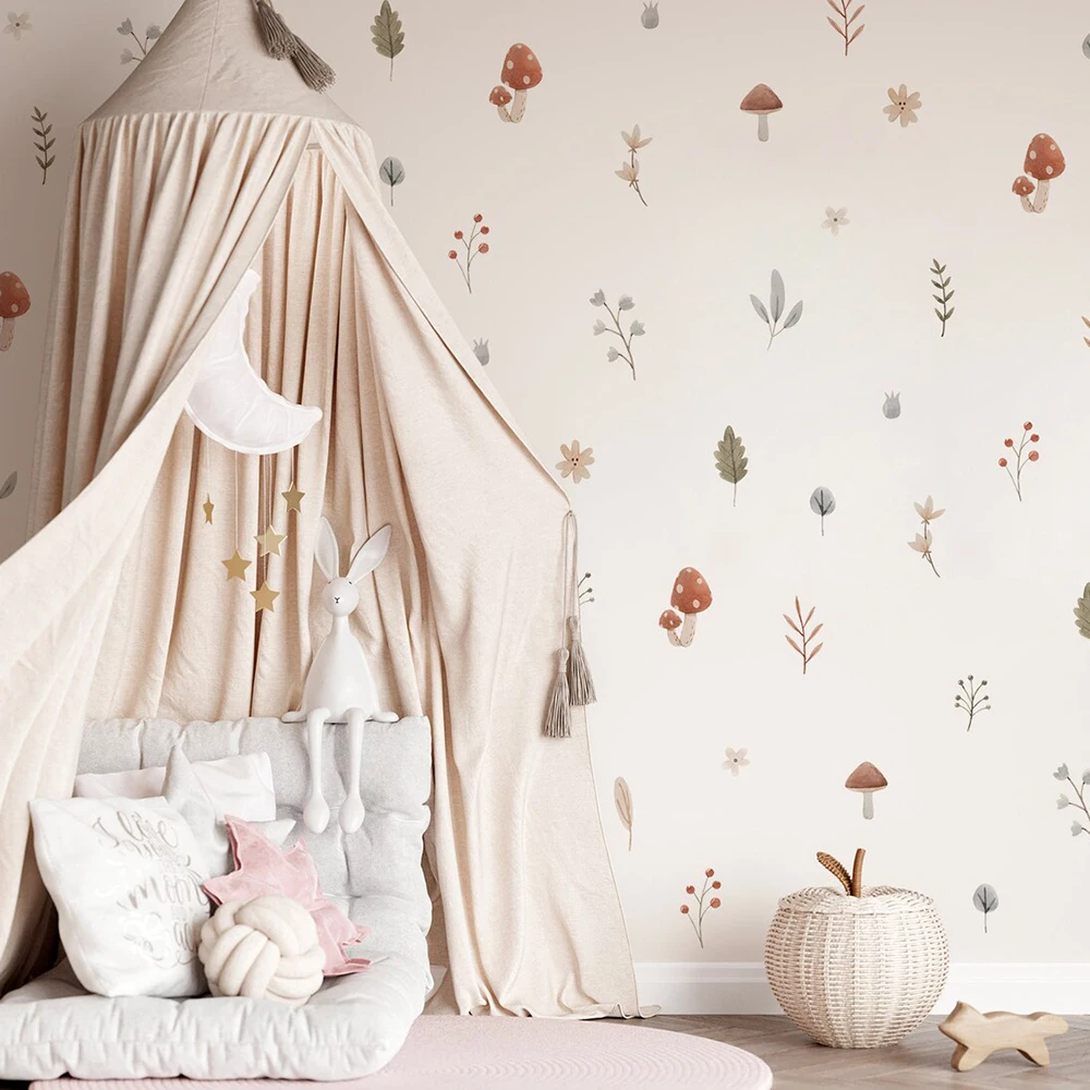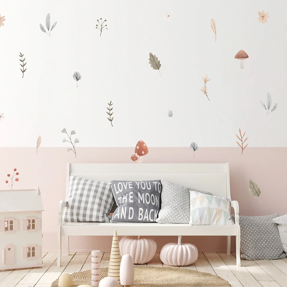 Item: Boho Cartoon Mushroom Branch Leaves Flowers Pattern Wall Stickers for Kids Room