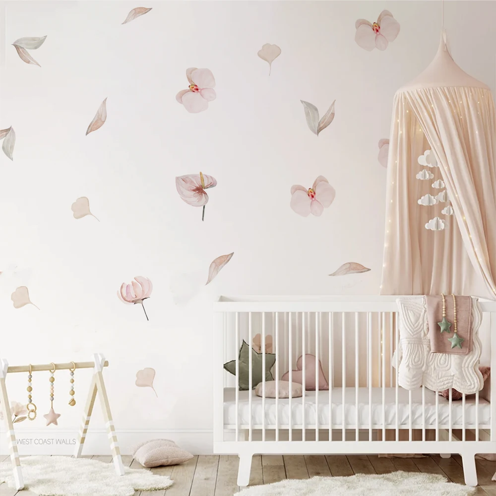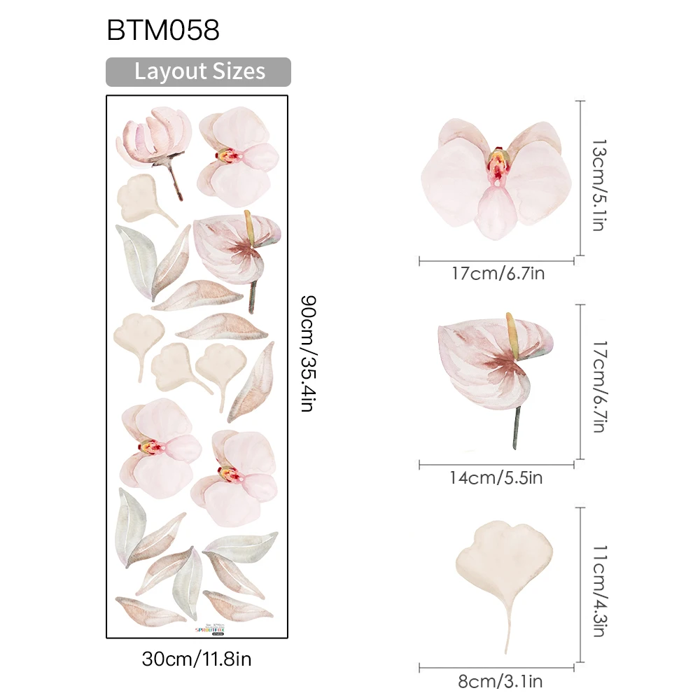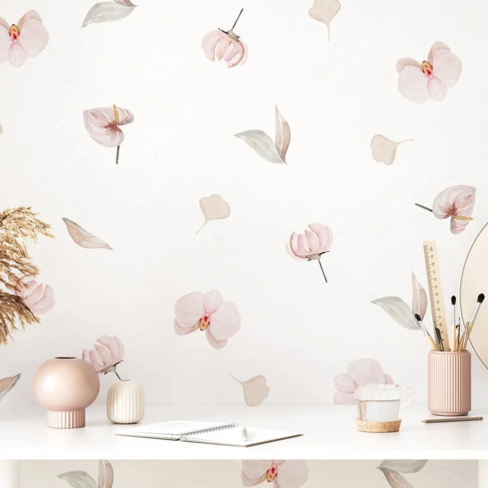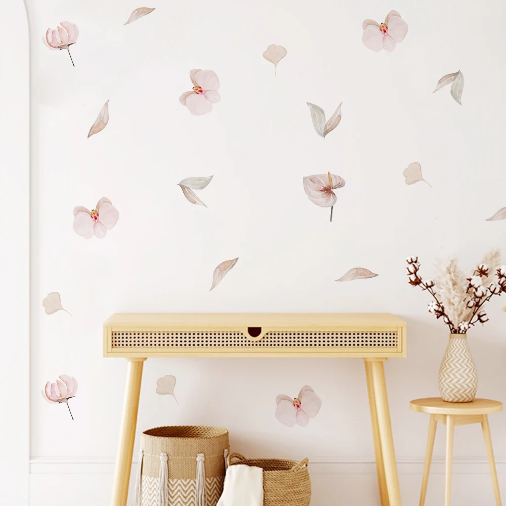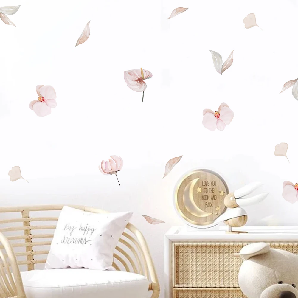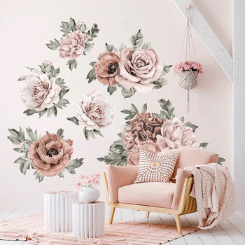 Item:Boho Watercolor Pink Flower Wall Stickers for Kids Rooms Living Room Cartoon Floral Flowers DIY Modern Romantic Wall Art Decals