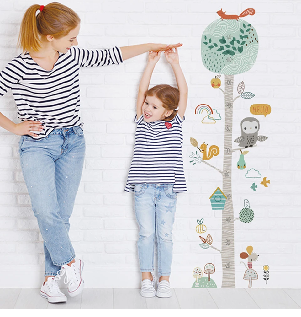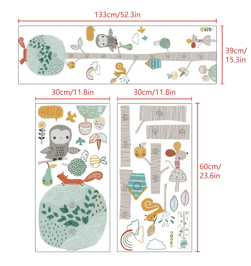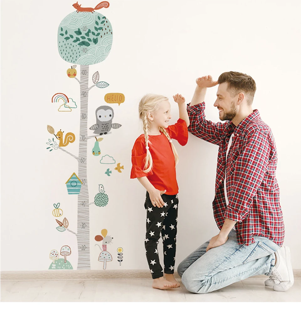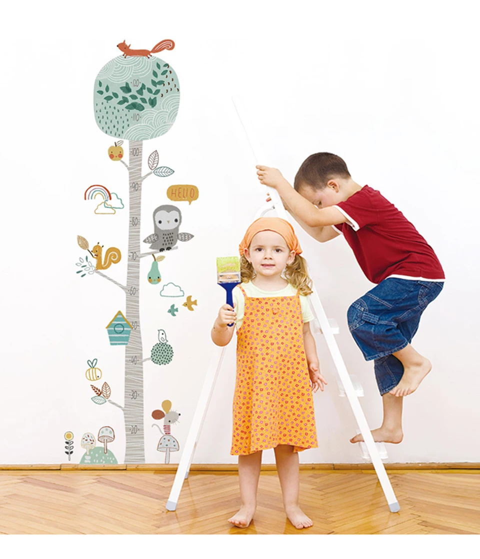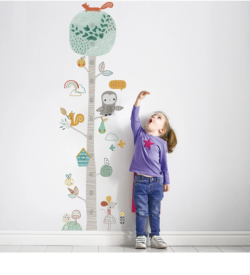 Cartoon Forest Animal Tree Height Measure Wall Stickers