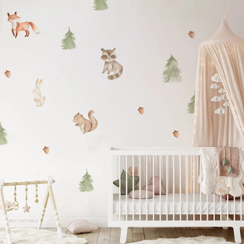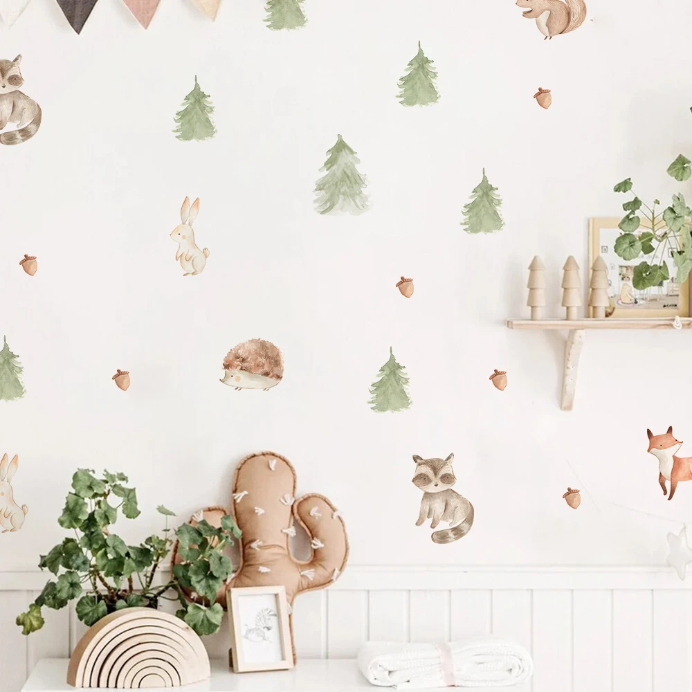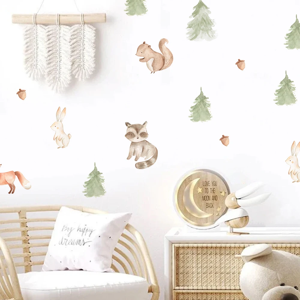 Item: Cartoon Forest Animal Wall Stickers For Baby Nursery Room Wallpaper Sticker Cute Fox Brown Bear Wall Decals