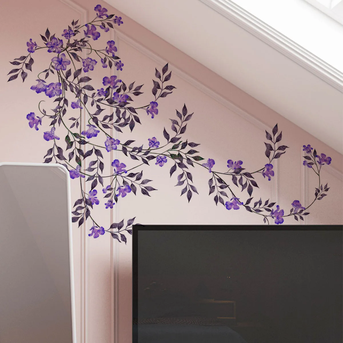 Chzimade Purple Flower Vine Rattan Wall Stickers