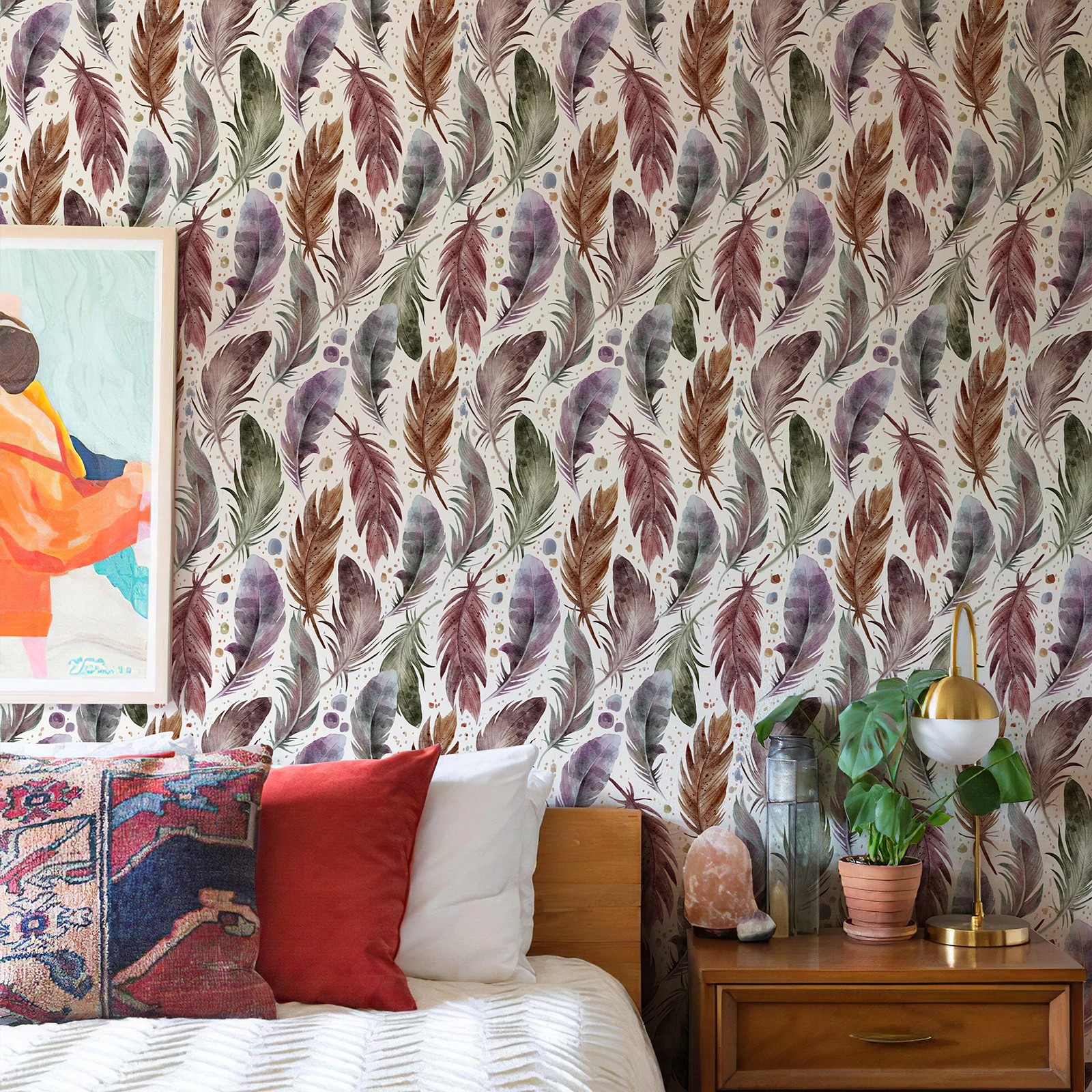 2. Apply Peel-Stick Wallpaper to the wall, beginning in the corner. (Do not peel all the backing all at once, peel off a few inches at a time, slowly stick it to the wall, and then continue to peel off a little more)