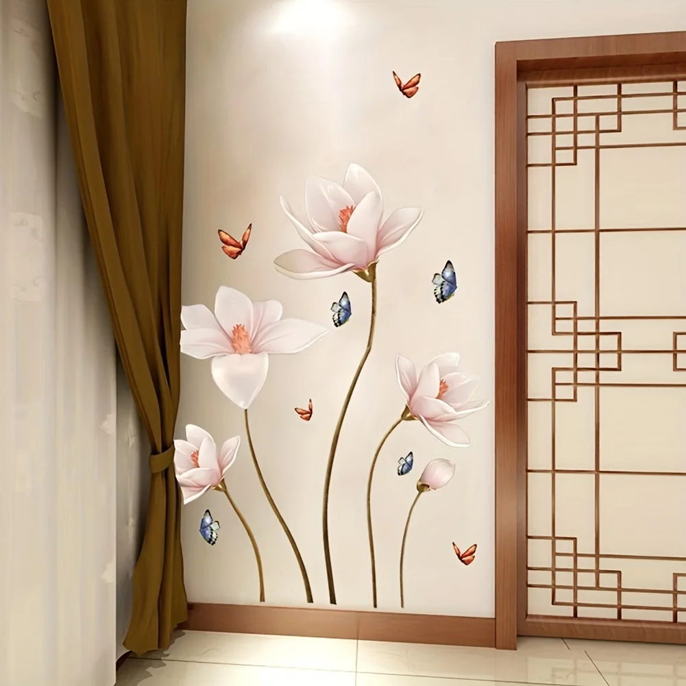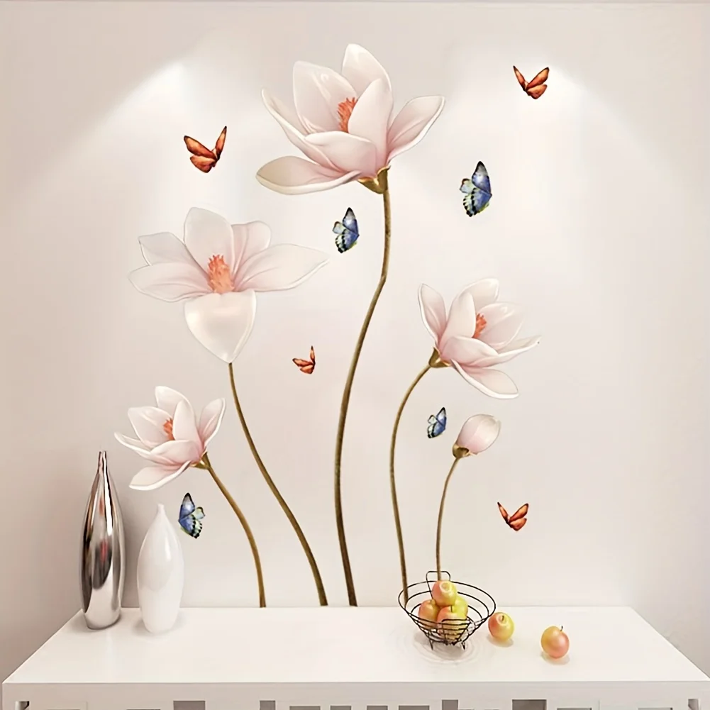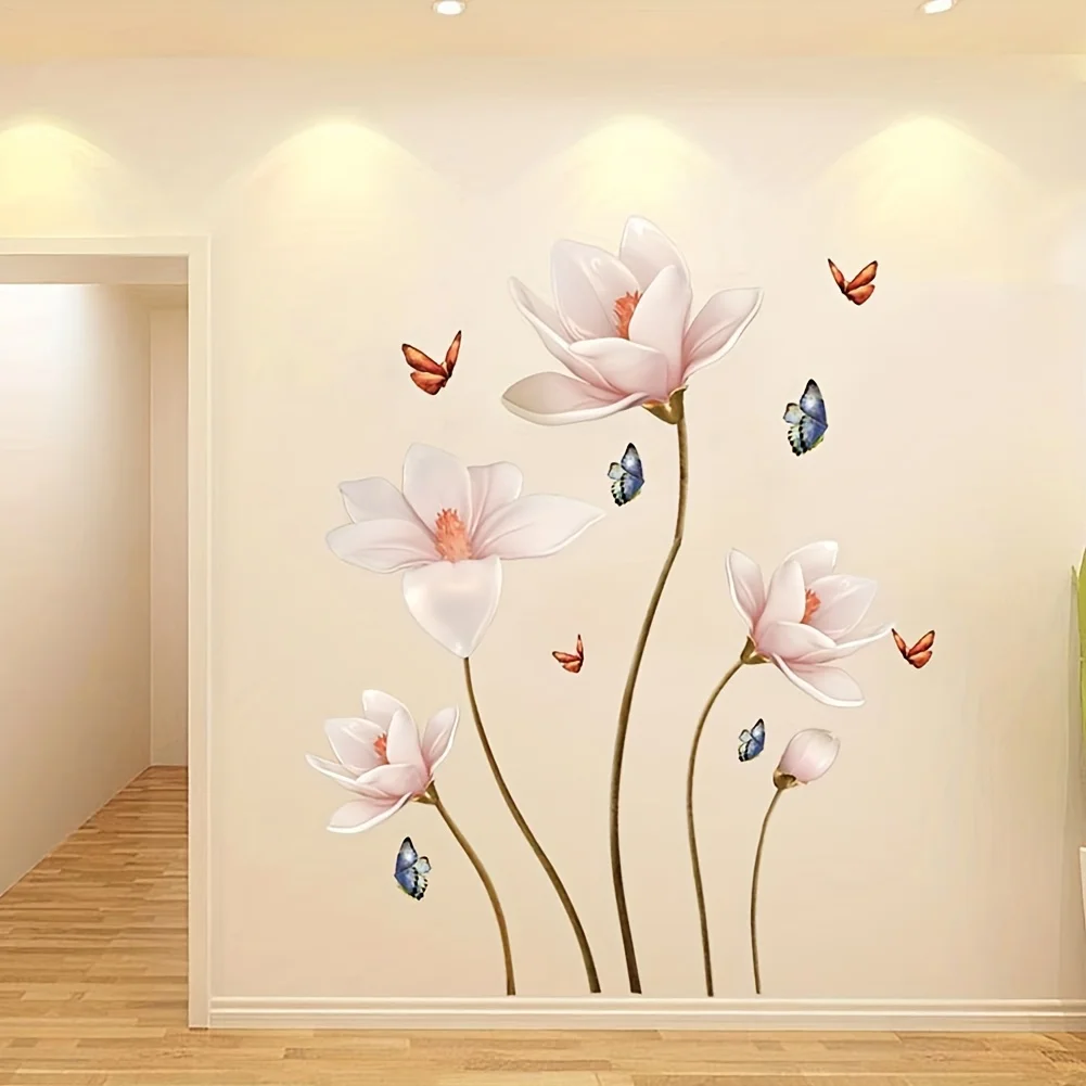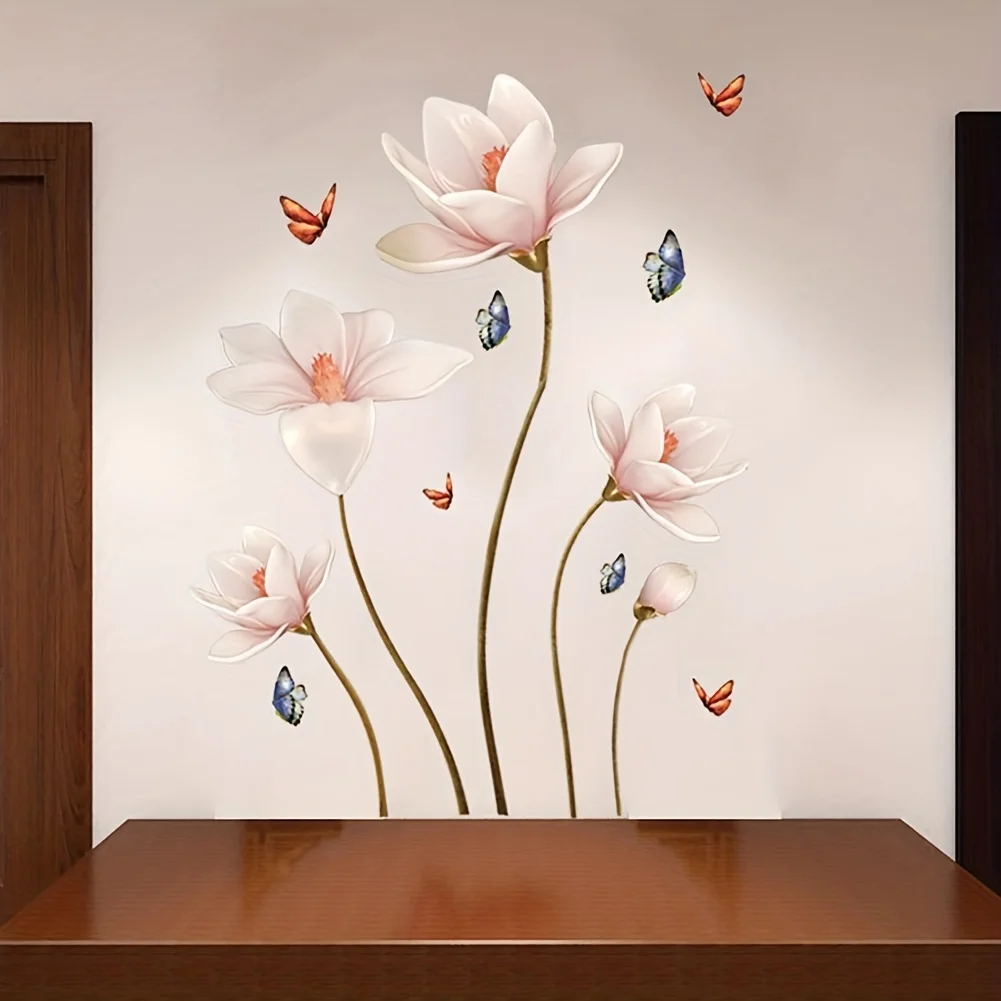 Colorful Flower Butterfly 3D Wall Stickers Self Adhesive Wallpaper Decal Waterproof Bedroom Background Living Room Decoration