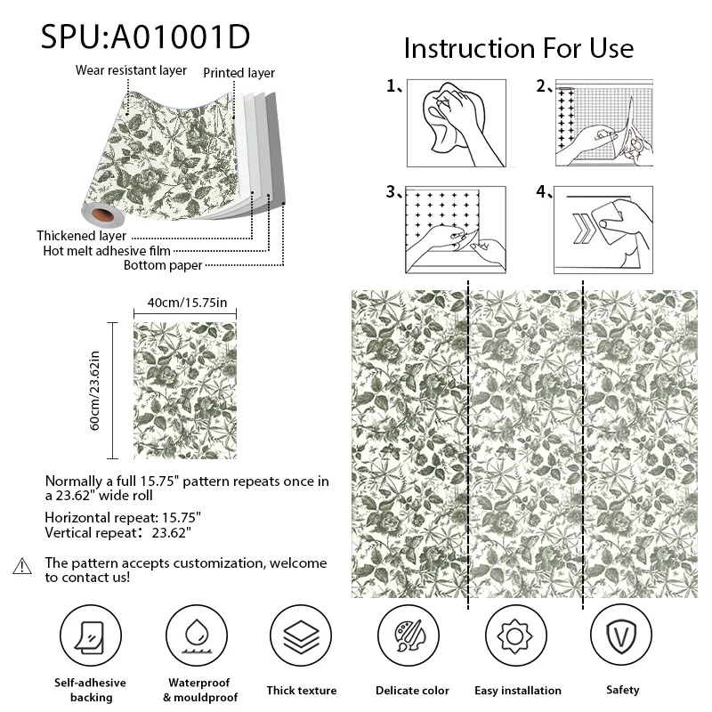 Material: Vinyl PVC Self adhesive Wallpaper
