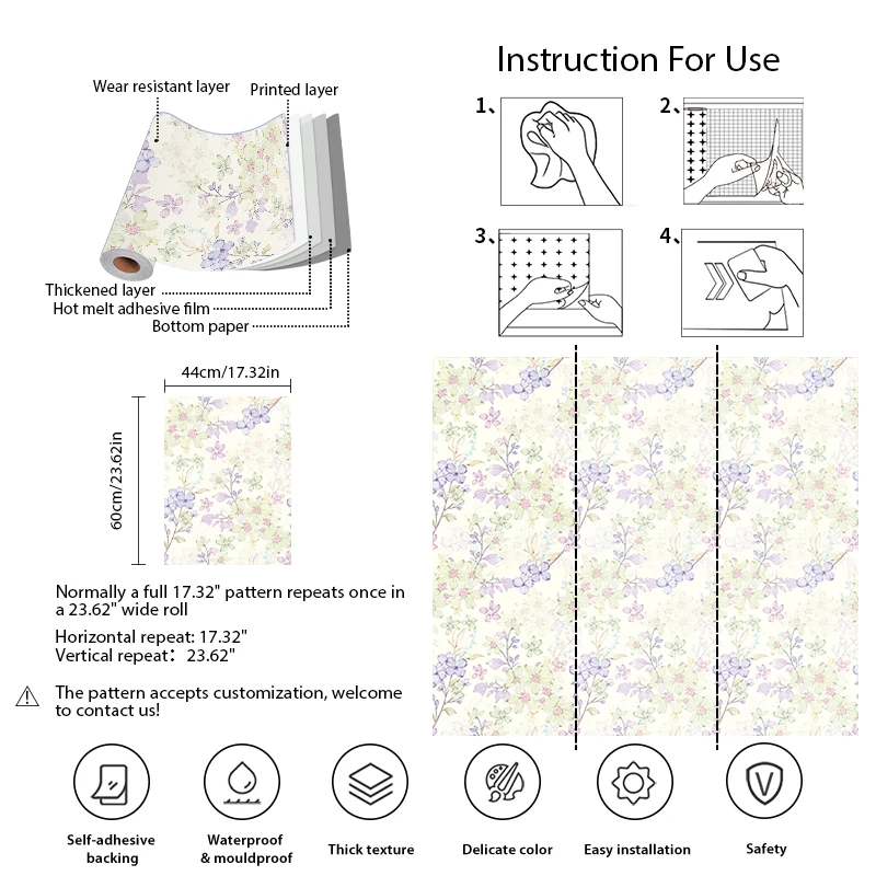 Elegant Fresh Flower Self Adhesive Wallpaper