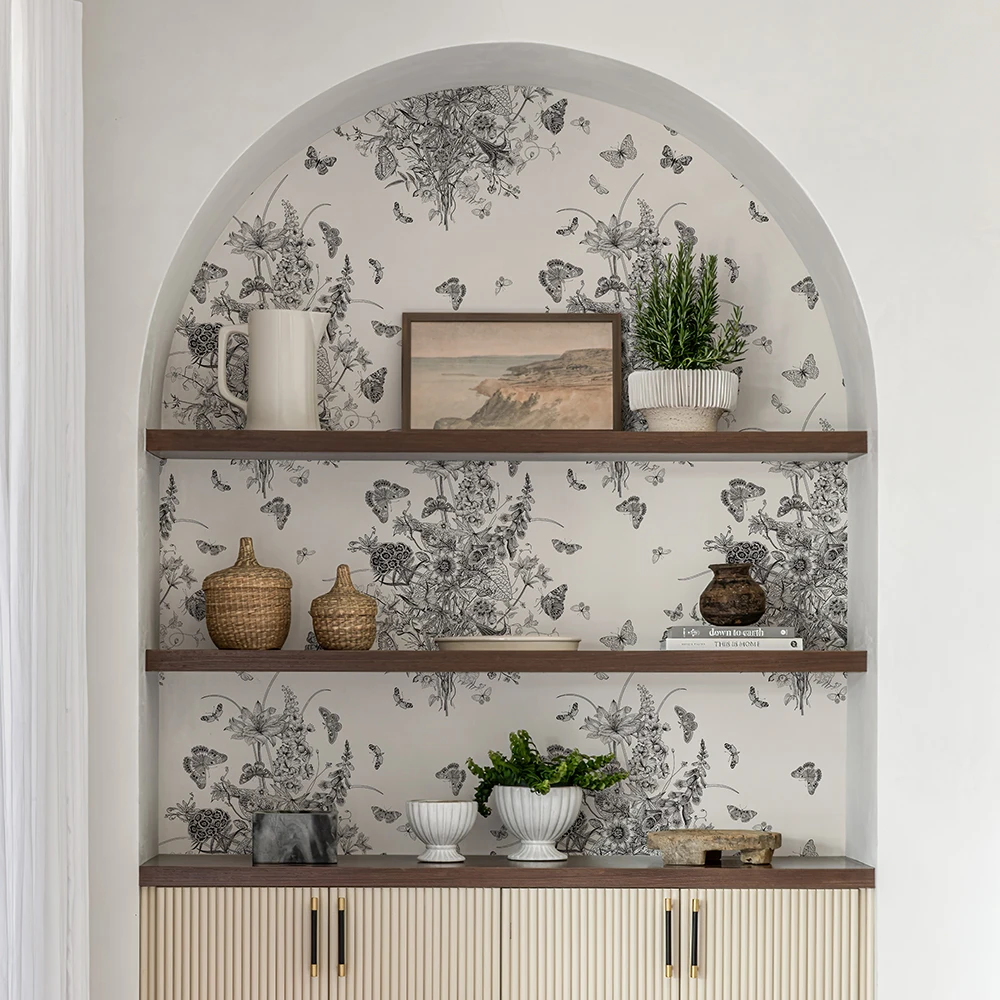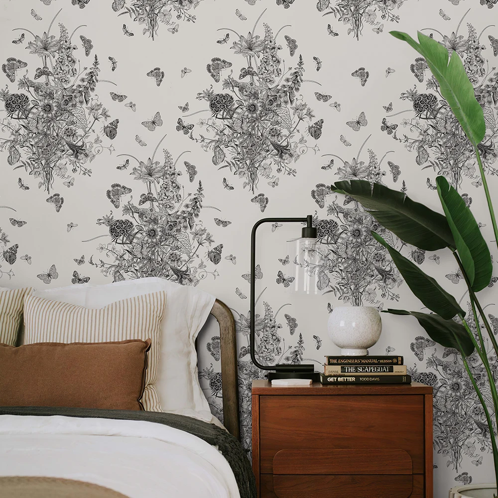 2. Apply Peel-Stick Wallpaper to the wall, beginning in the corner. (Do not peel all the backing all at once, peel off a few inches at a time, slowly stick it to the wall, and then continue to peel off a little more)