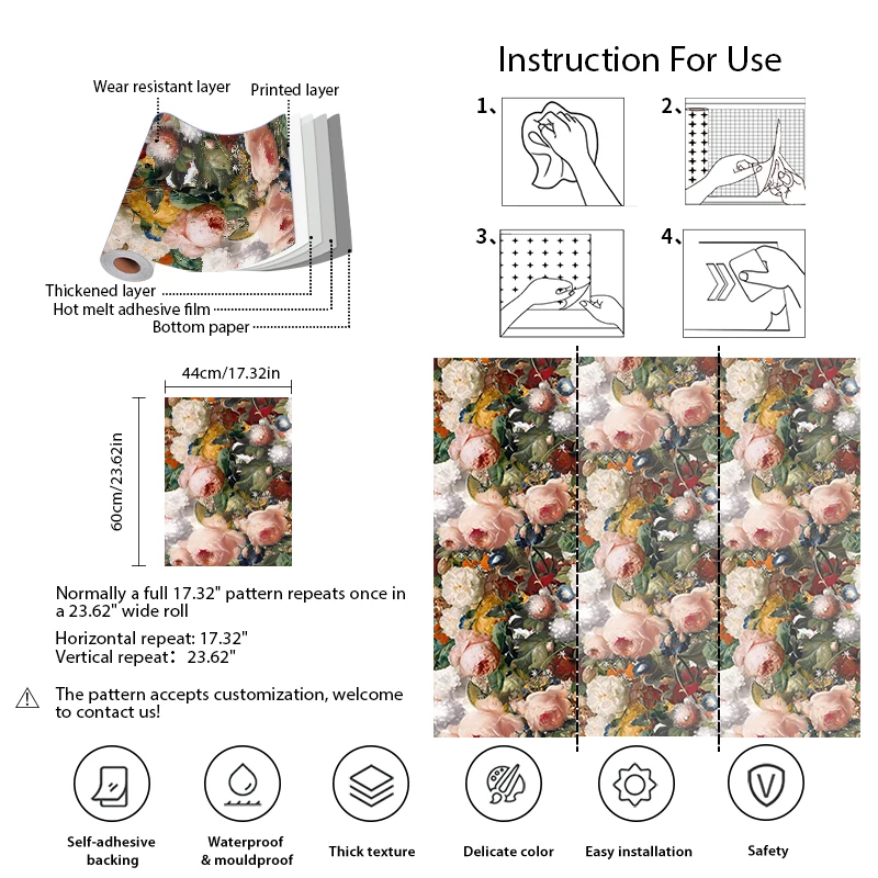 3.  Wallpaper you will receive may have some wrinkles on it or both ends, but it do not affect the effect after gluing it on the wall.