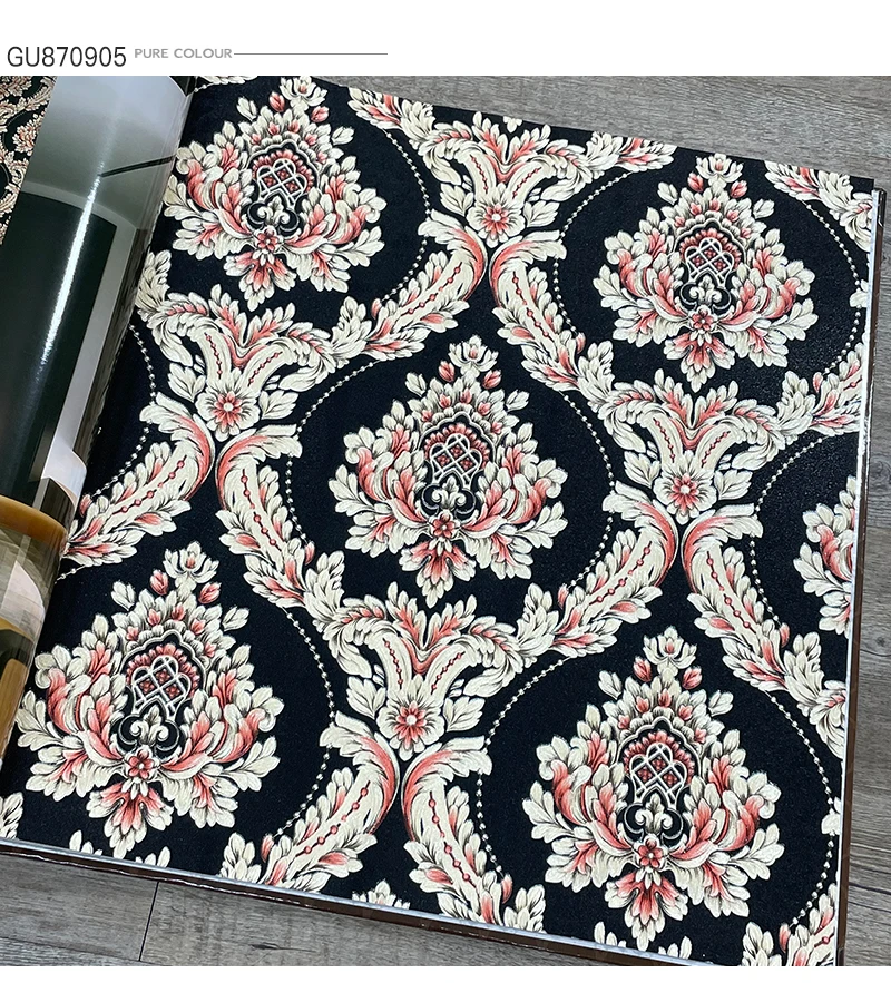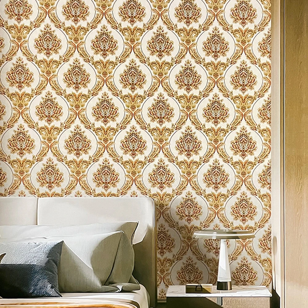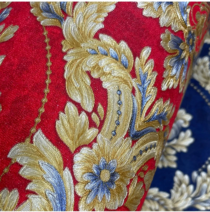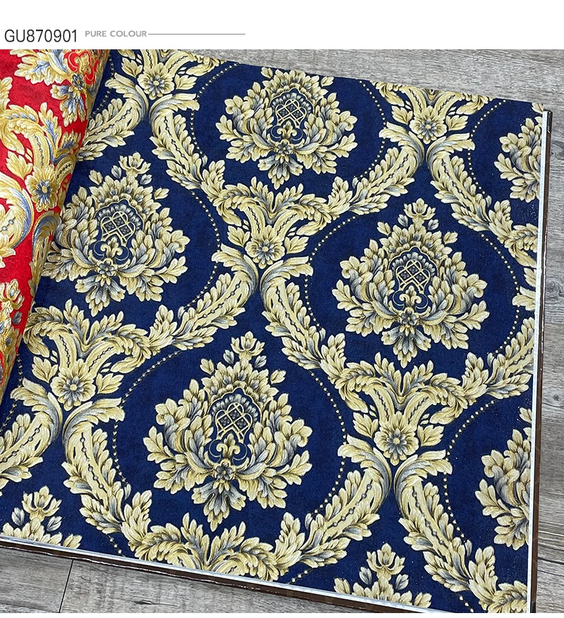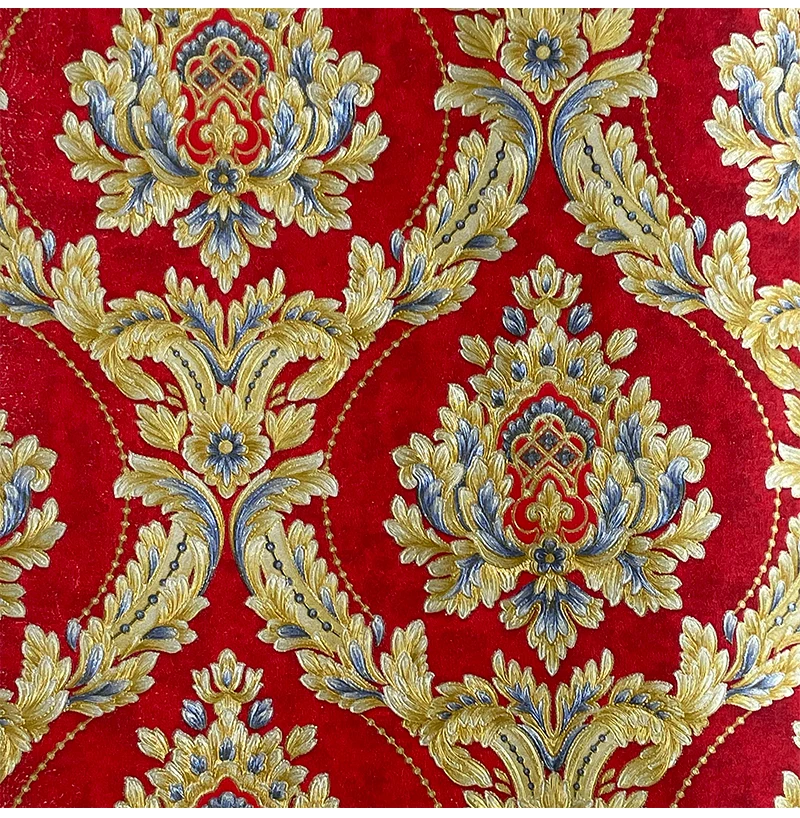 French Red Damask Flocking Embossed Textured Wallpaper Roll for Living Room Bedroom Gold Red Prepasted Wallpaper Multi-Color