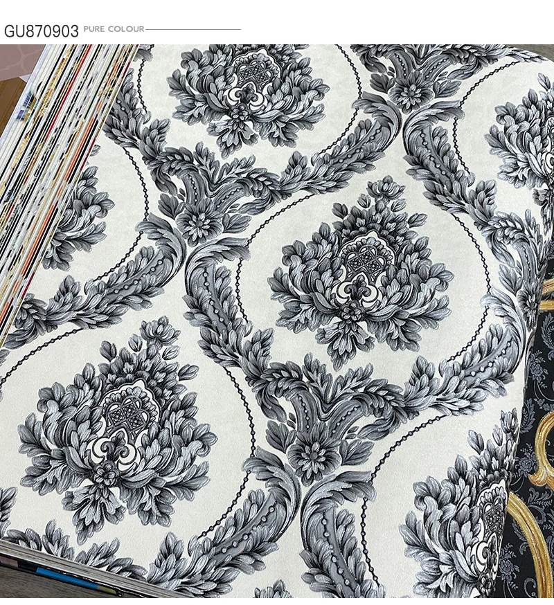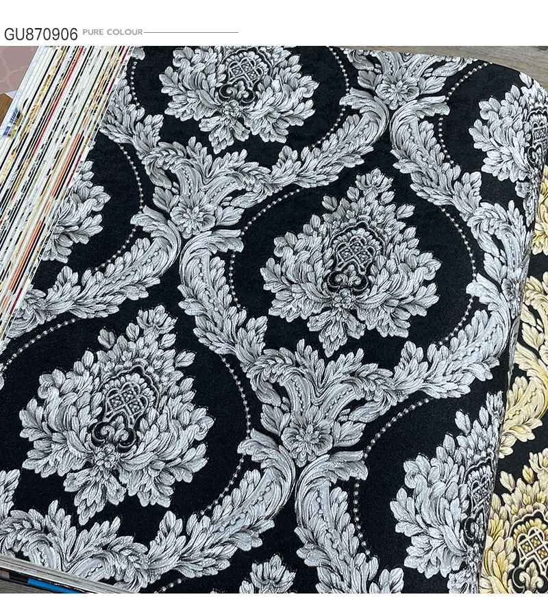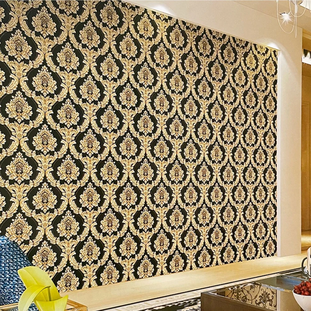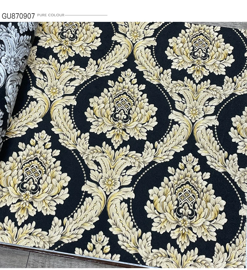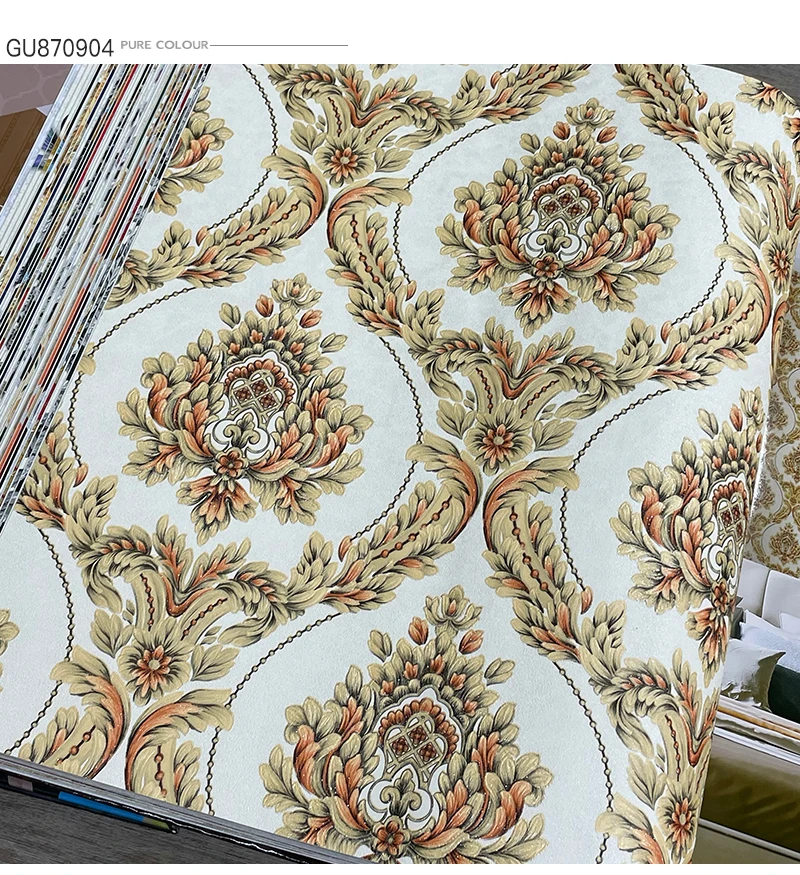 French Red Damask Flocking Embossed Textured Wallpaper Roll for Living Room Bedroom Gold Red Prepasted Wallpaper Multi-Color