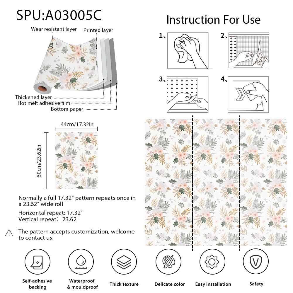 Flora Self-Adhesive Removable Peel And Sticker Wallpaper