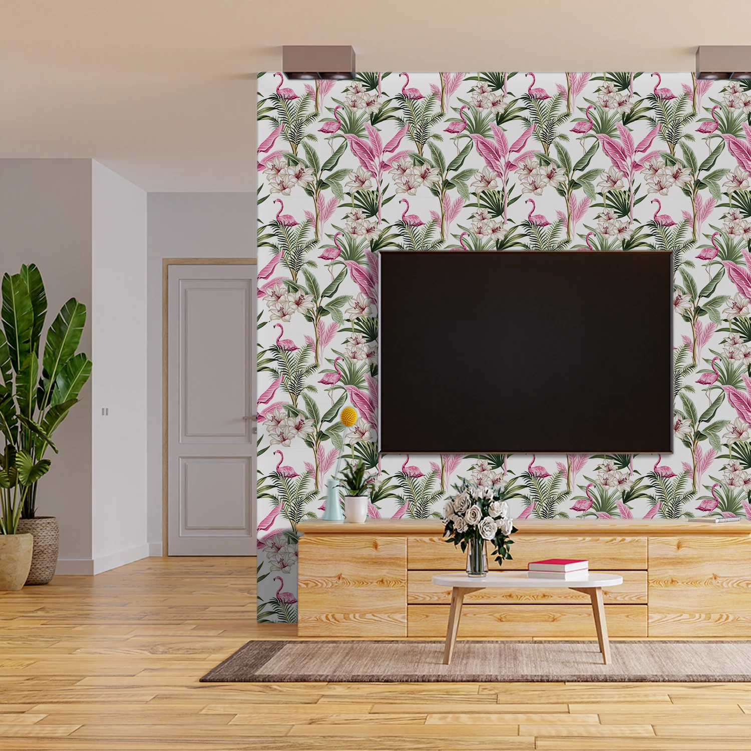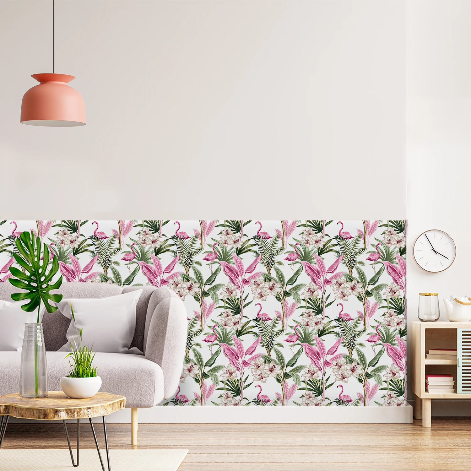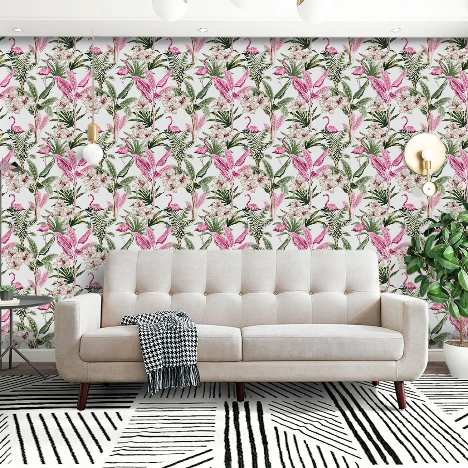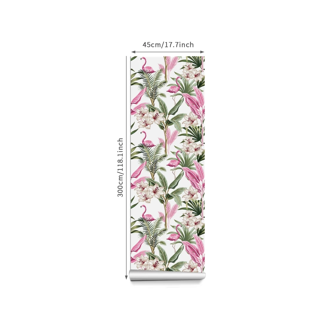 Product : Waterproof Flamingo Flower Leaves Wallpaper Self Adhesive