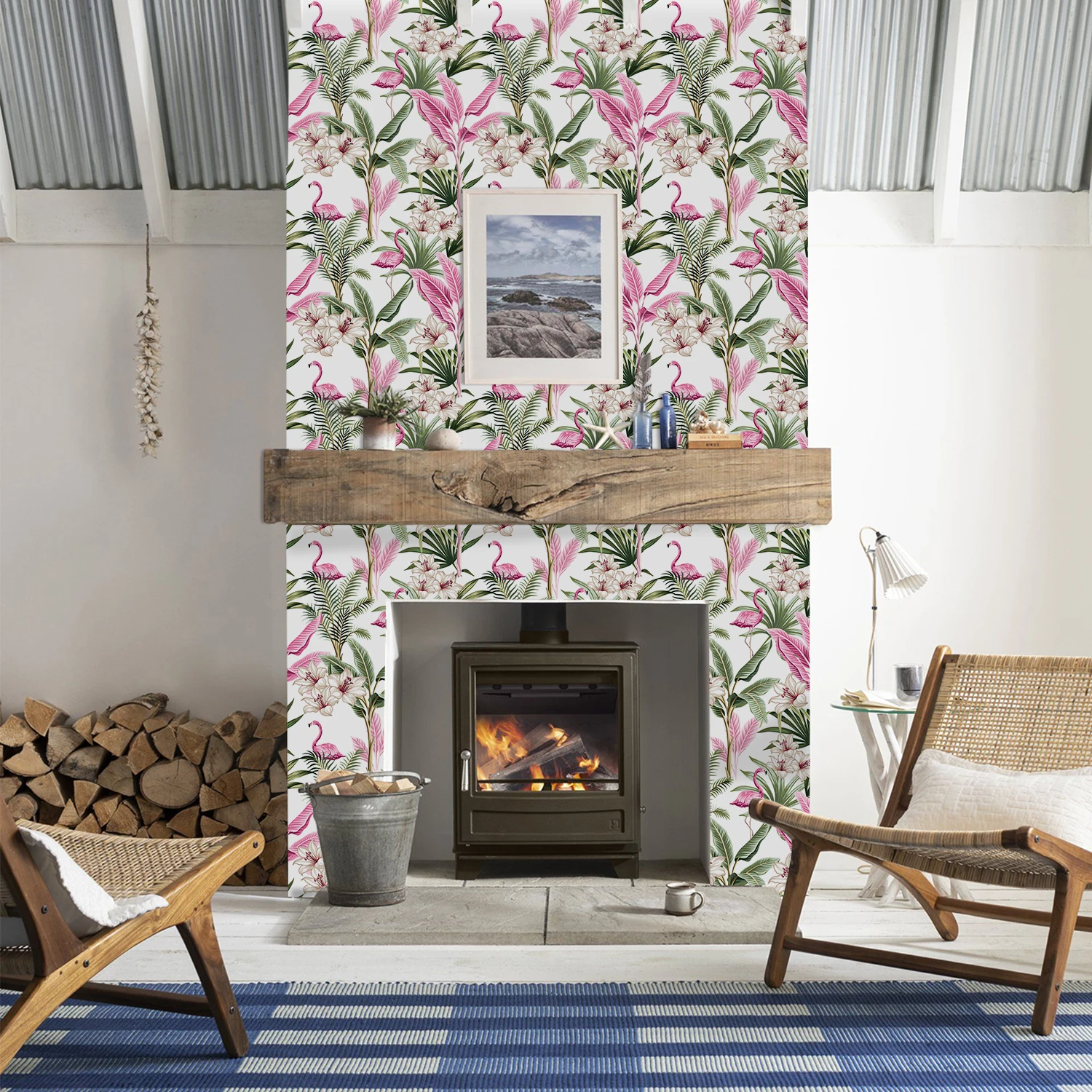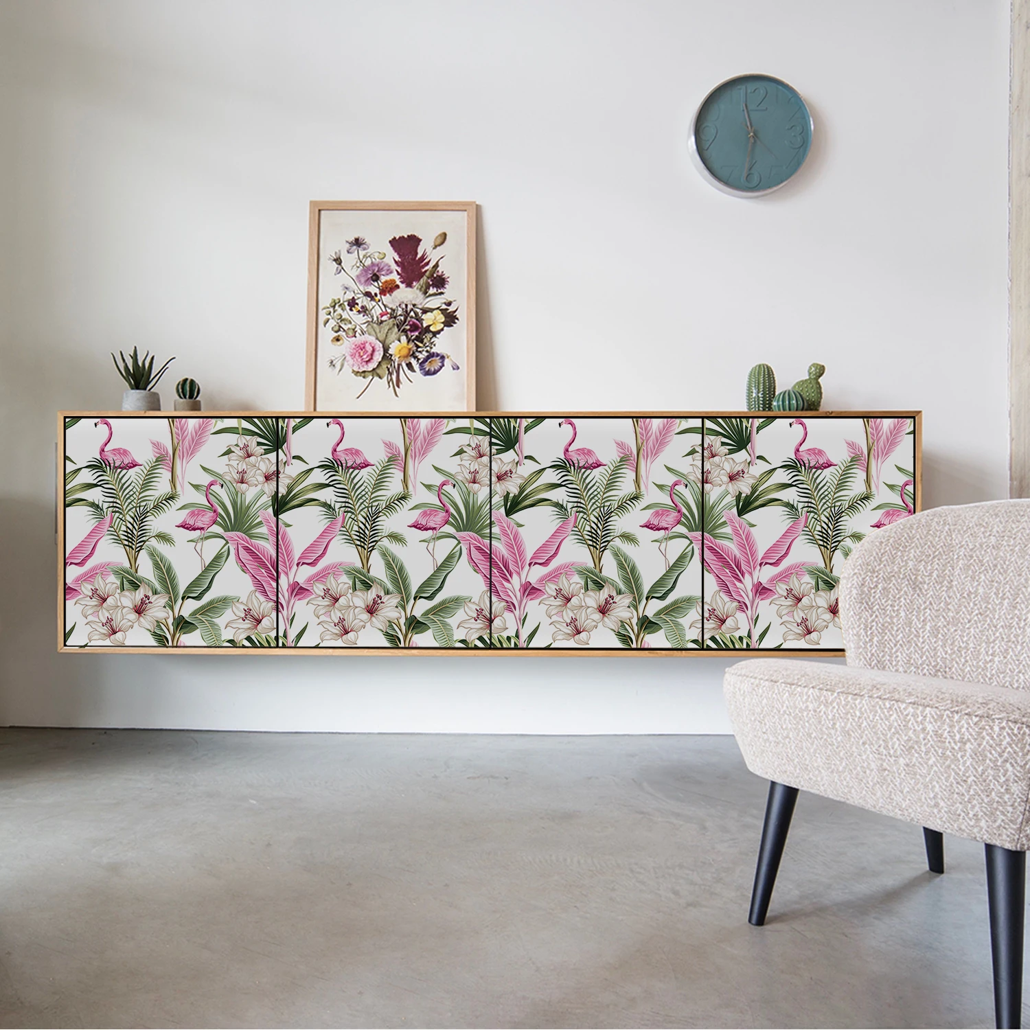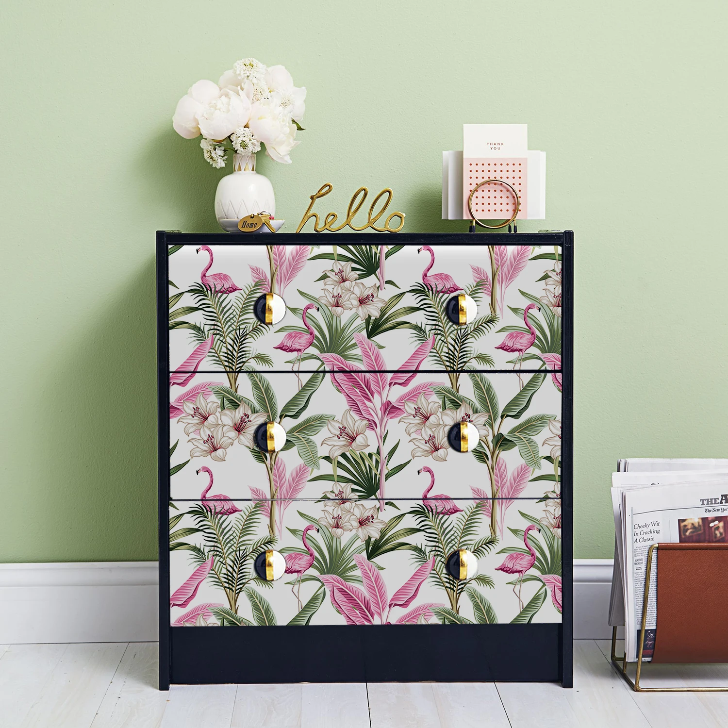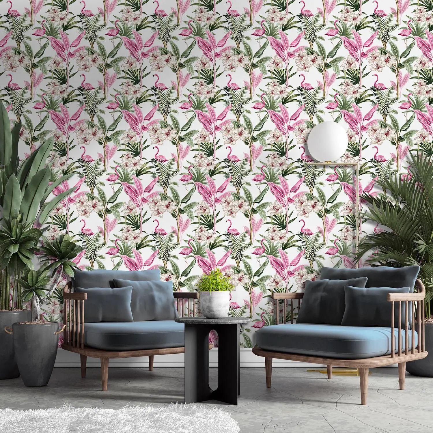 Product : Waterproof Flamingo Flower Leaves Wallpaper Self Adhesive