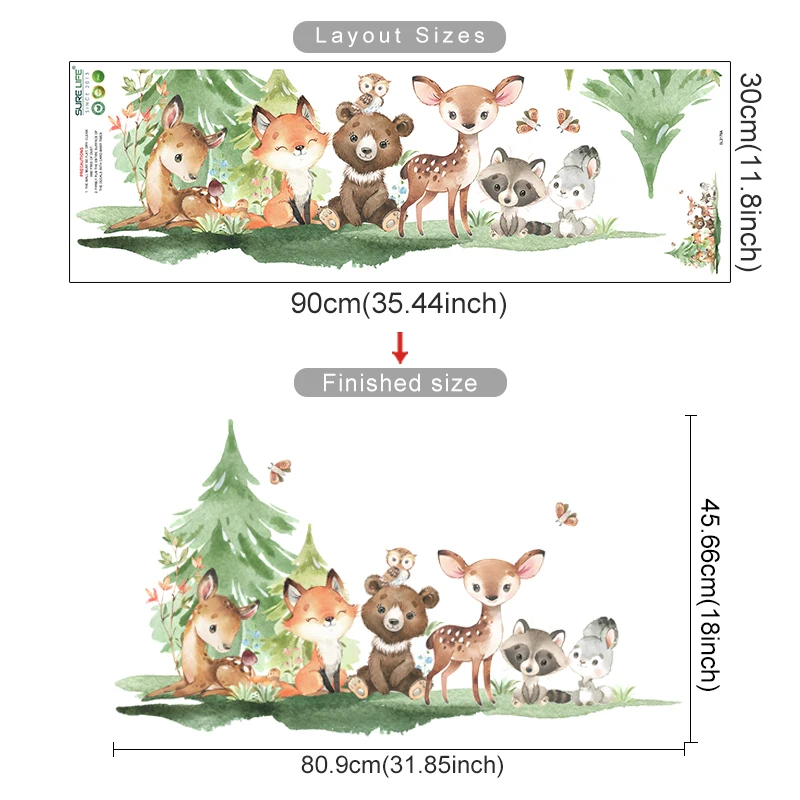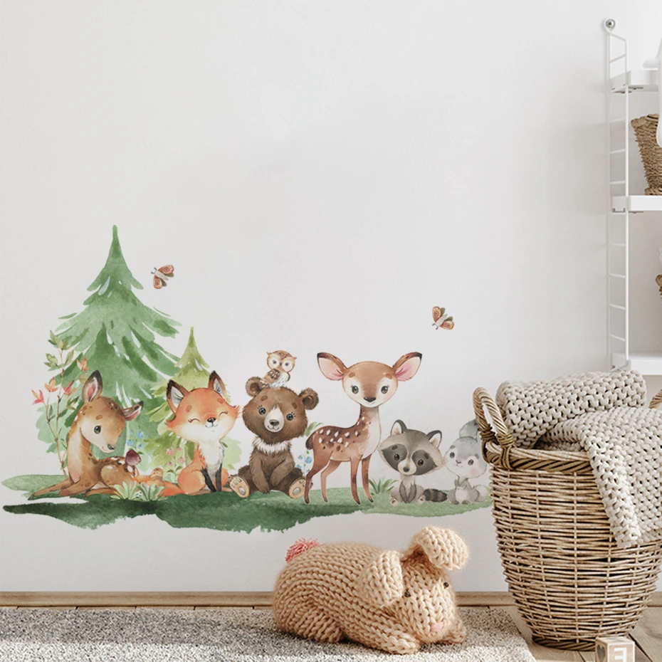 Forest Animals Theme Bear Deer Rabbit Children’s Wall Stickers f