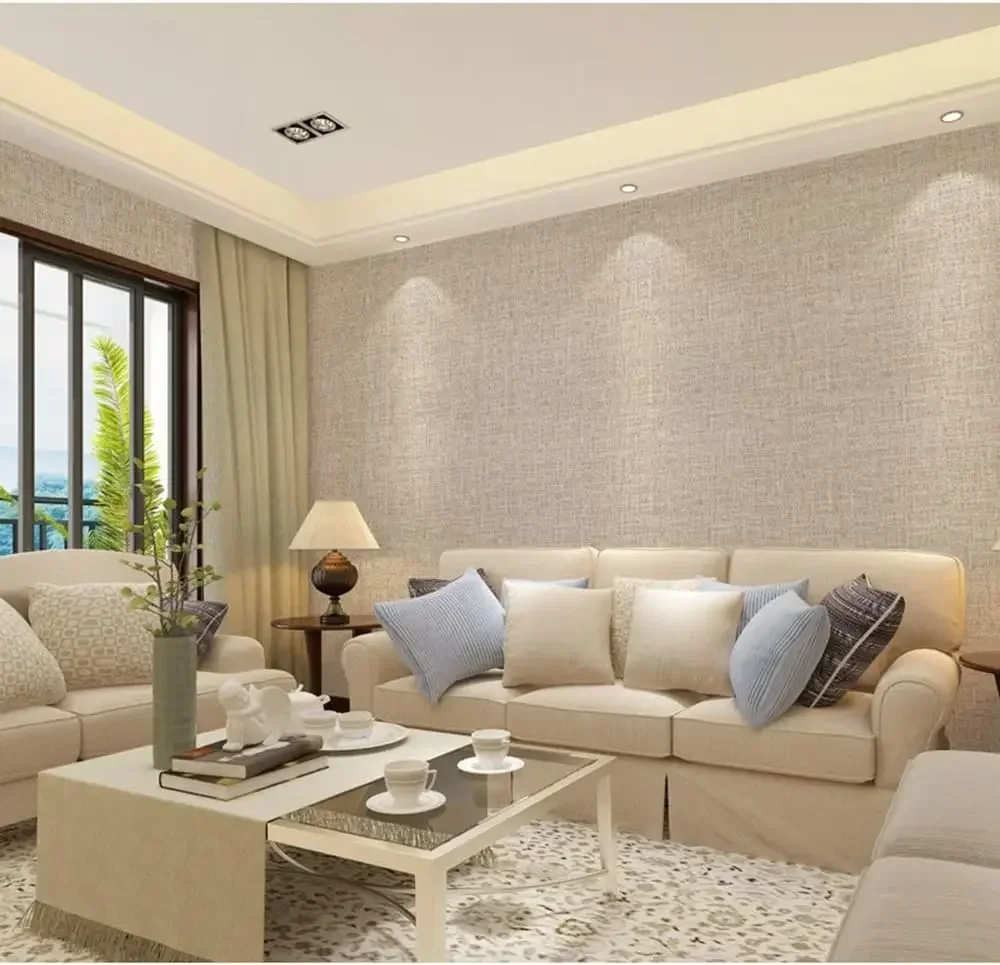 Material:Vinyl Removable Peel and Stick Solid color Faux Linen Wallpaper