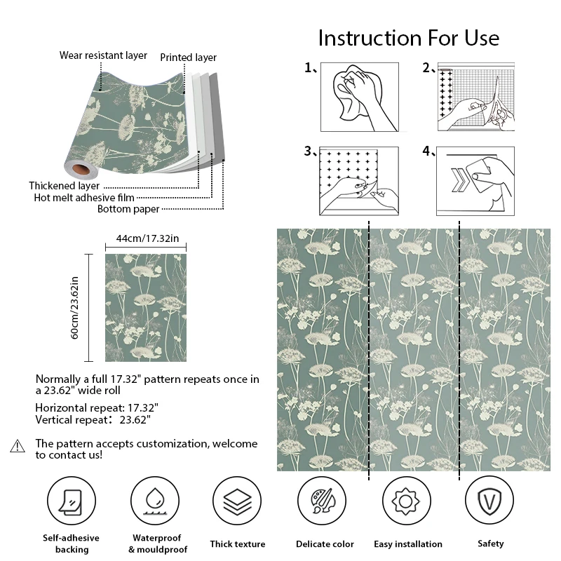 Material: Vinyl PVC Self adhesive Wallpaper