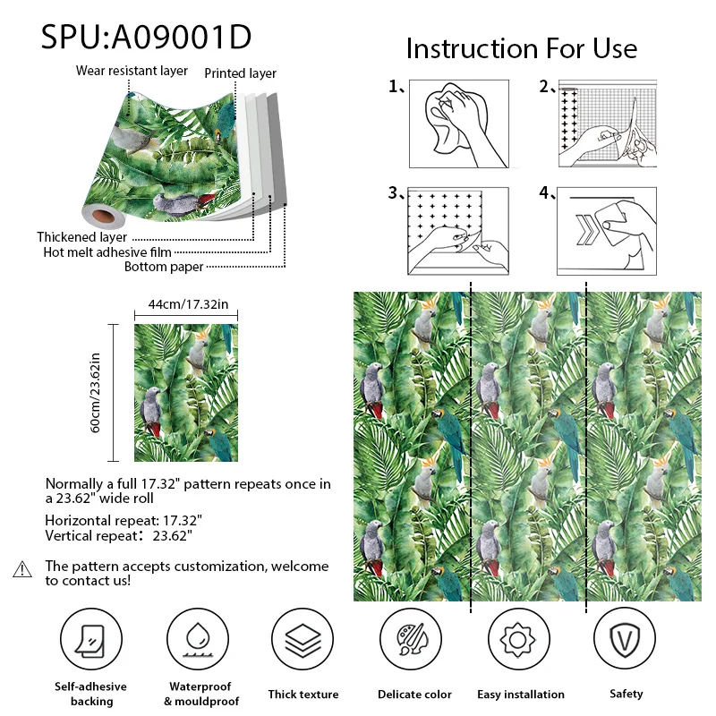 Material: Vinyl PVC Self adhesive Wallpaper