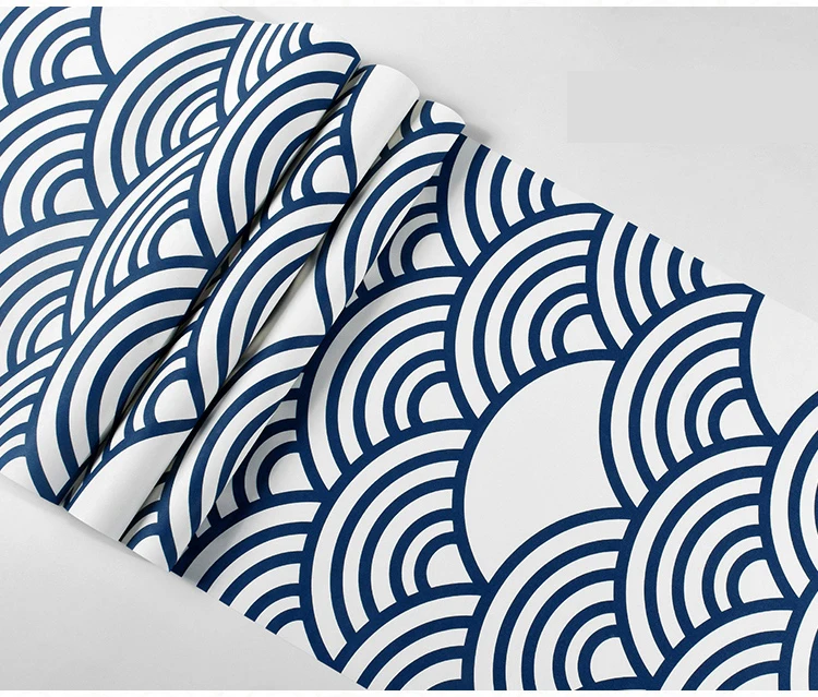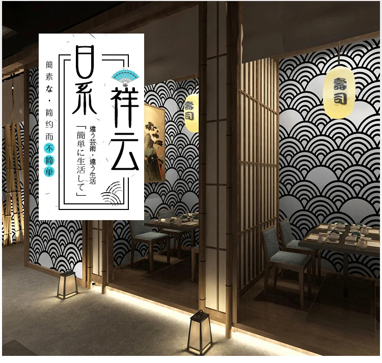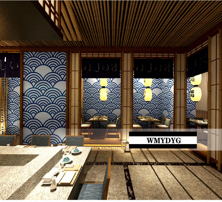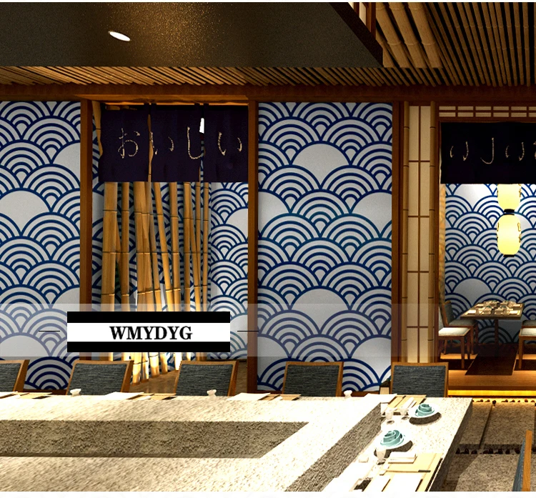 Japanese Peel and Stick Wallpaper Roll Japanese Cuisine Ramen Sushi Restaurant Decor Wallpaper Geometric Sea Wave Wall Paper