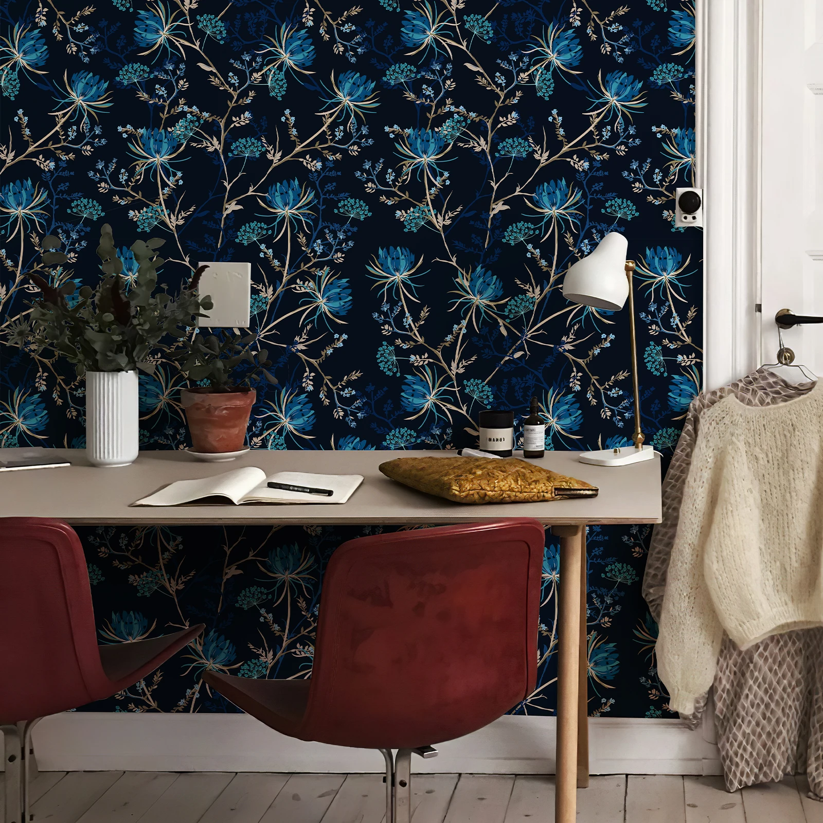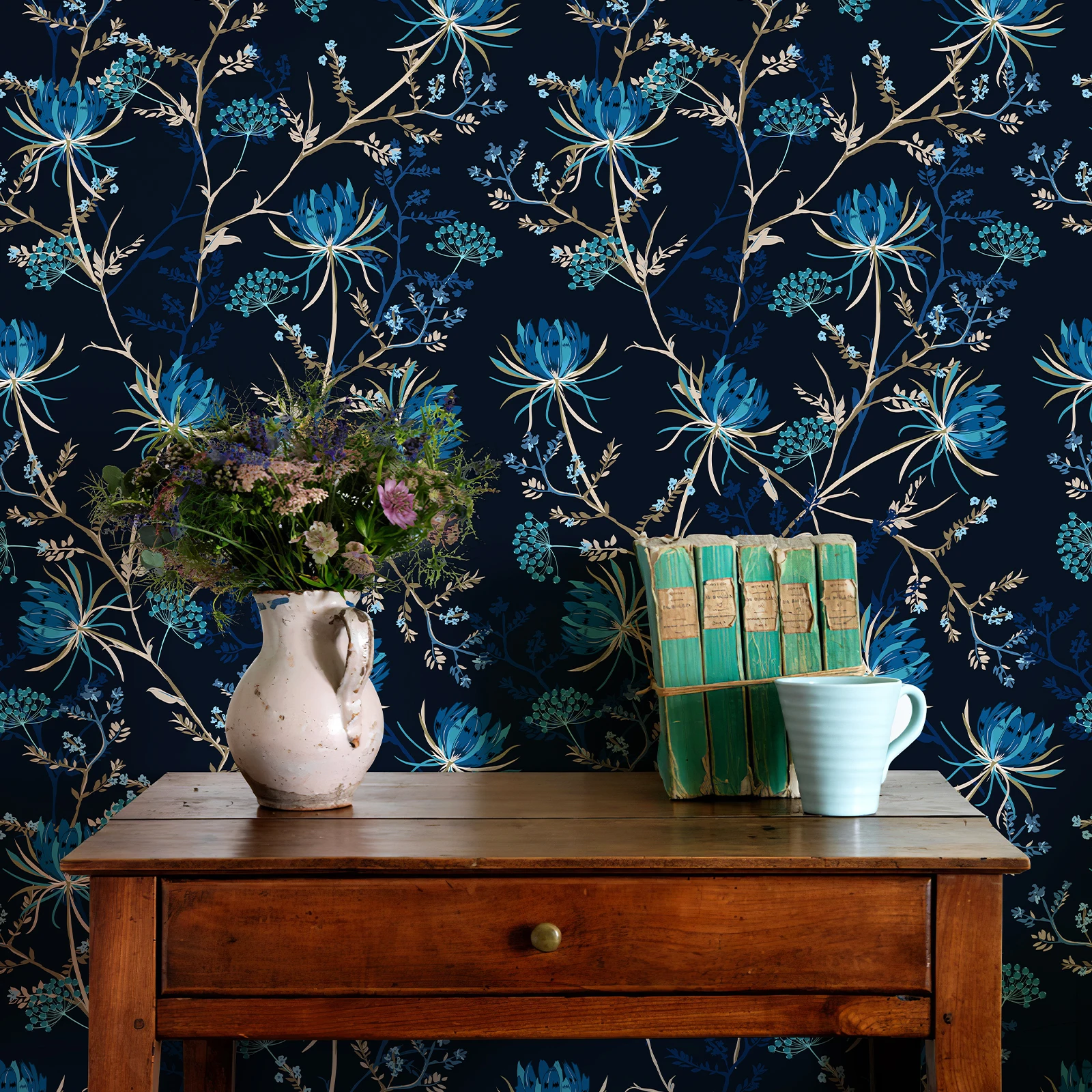 2. Apply Peel-Stick Wallpaper to the wall, beginning in the corner. (Do not peel all the backing all at once, peel off a few inches at a time, slowly stick it to the wall, and then continue to peel off a little more)