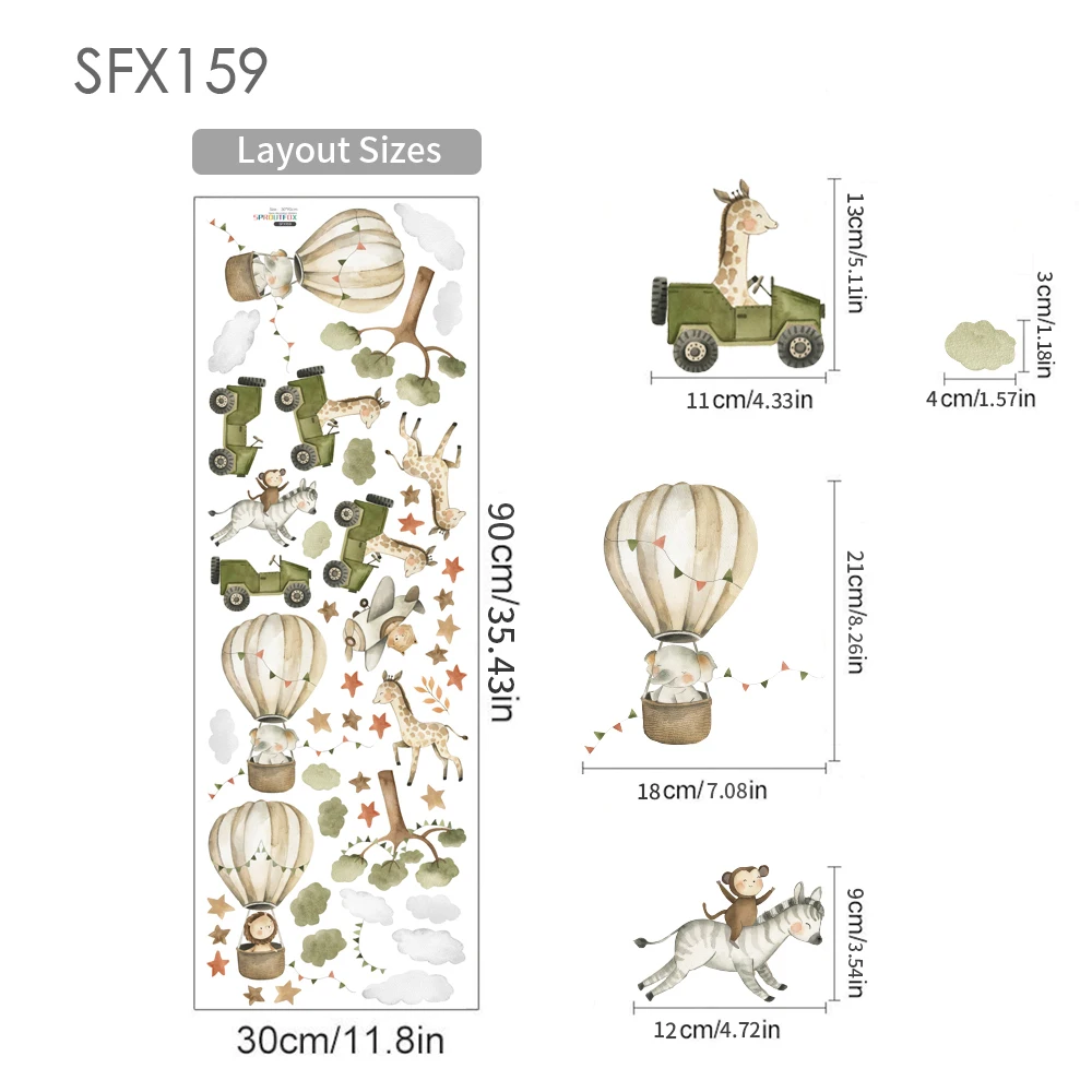 Item: Lovely Animal Balloon Elephant Lion Giraffe Wall Stickers Nursery Home Decoration for Kids Room