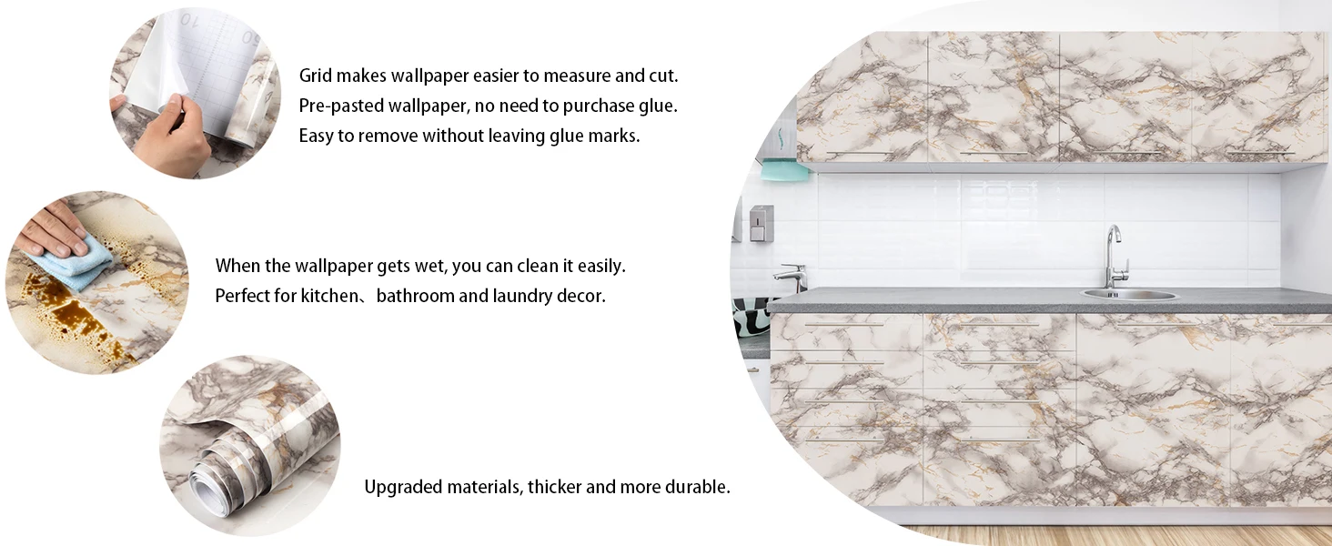 This contact paper is a Vinyl Marble Wallpaper Contact Paper. Apply it to walls, backsplash, TV background Wall to transform that old surface into a beautiful elegant new surface.
