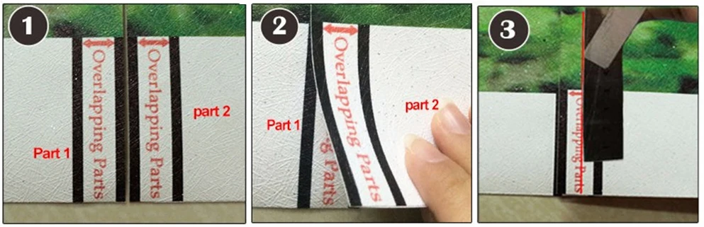 Please use a ruler and knife to cut the wallpaper in the middle. Strip off the overlapping parts. Thank you![]()