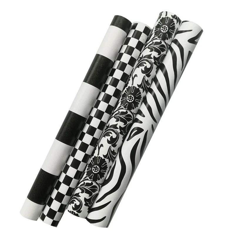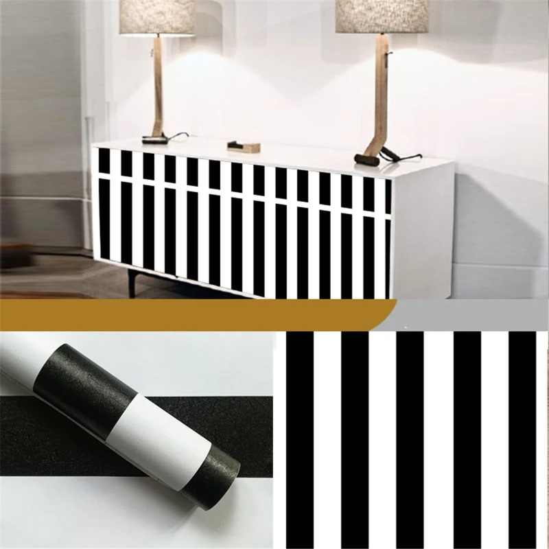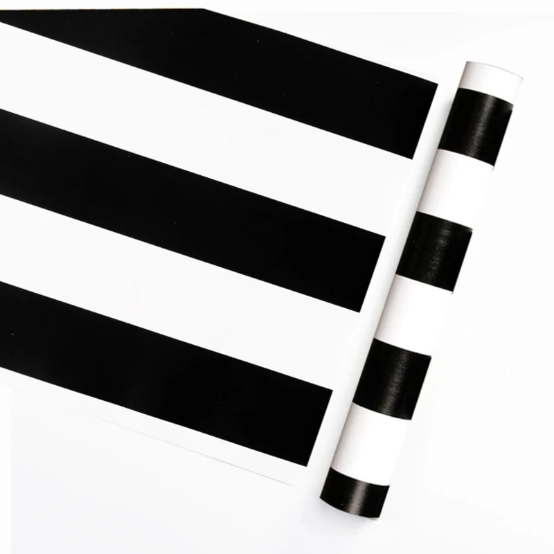 Modern PVC Black White Striped Self-adhesive Wallpaper Peel and Stick Contact Wall Sticker for Kitchen Bathroom Furniture Decor