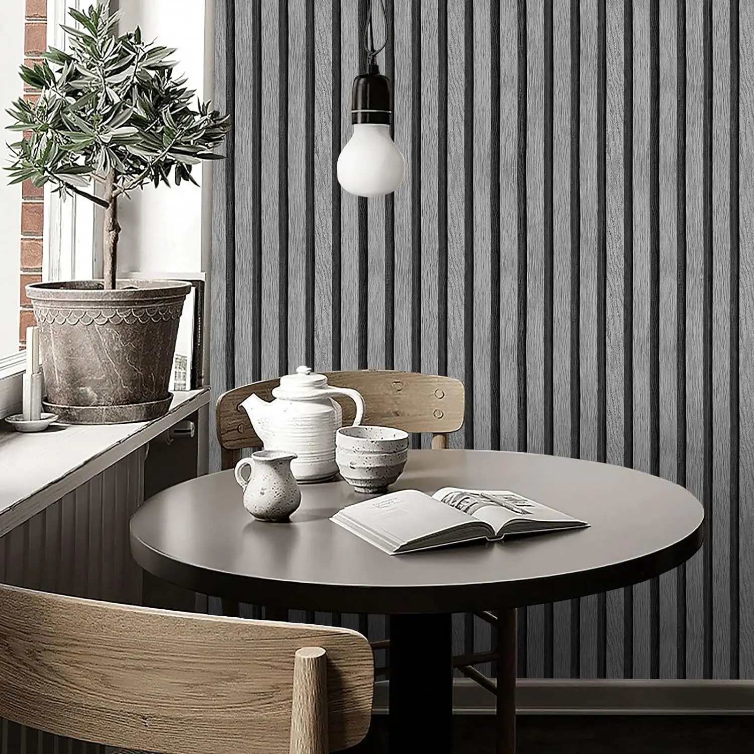 【Size】Slats Wood Wallpaper 17.7in×120in / Roll (14.7 Square Feet / Roll) slats wood wallpaper.