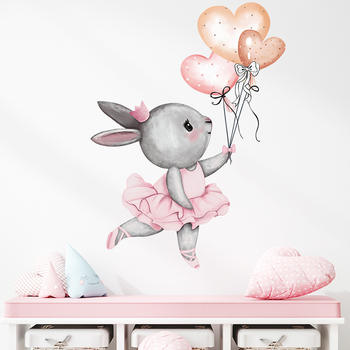 Cartoon Pink Umbrella Butterfly Bunny in Love Wall Stickers