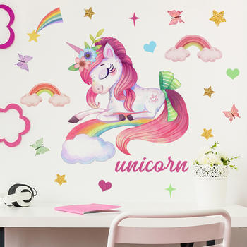 Rainbow Unicorn Baby Girls Room Wall Stickers