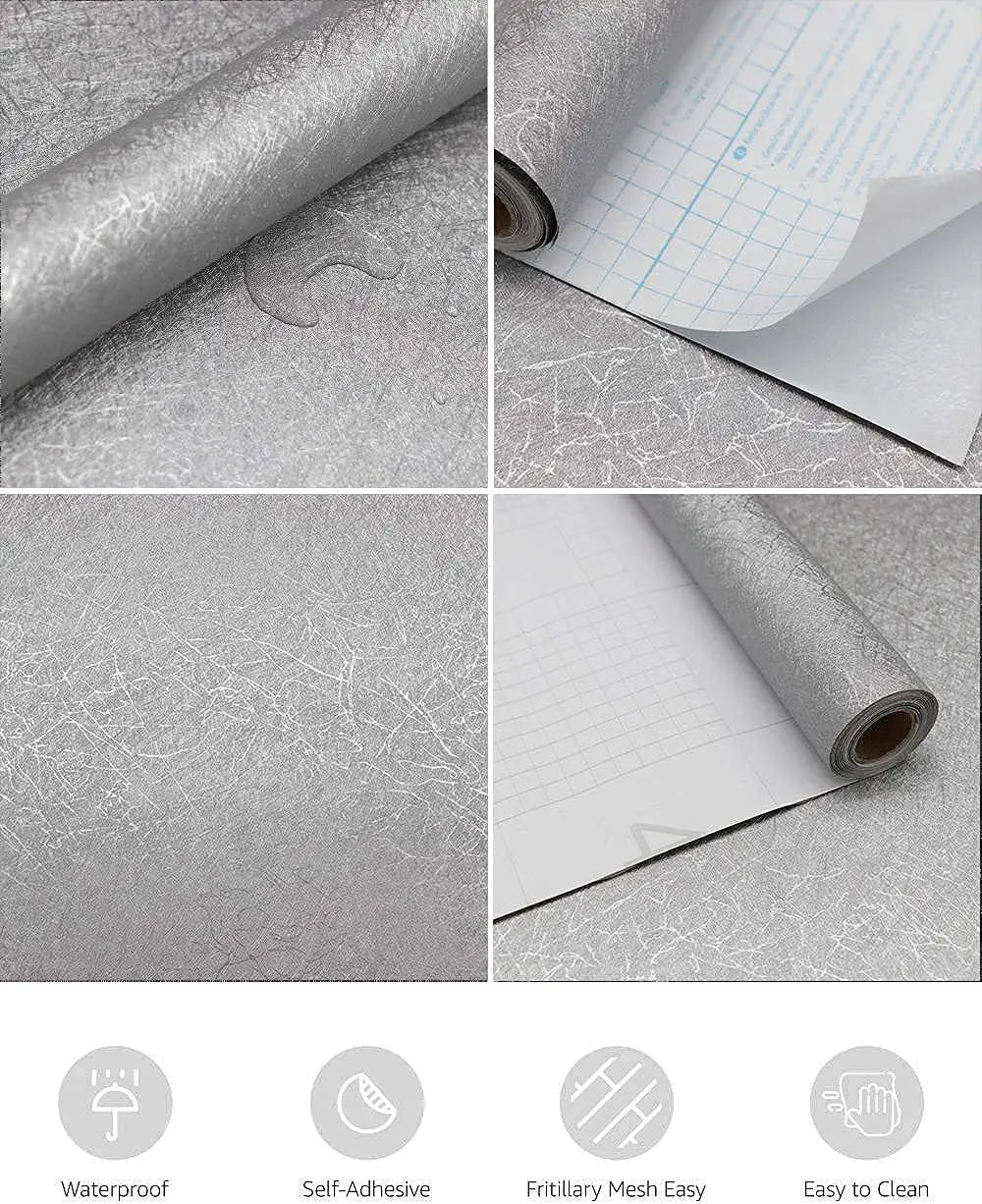 Easy to clean – The silver grey wallpaper is covered with PVC film, which can effectively prevent the adhesion of water. When you clean, you can easily wipe it with a wet towel. At the same time, our grey wallpaper can easily cover the scratches on the surface of the table