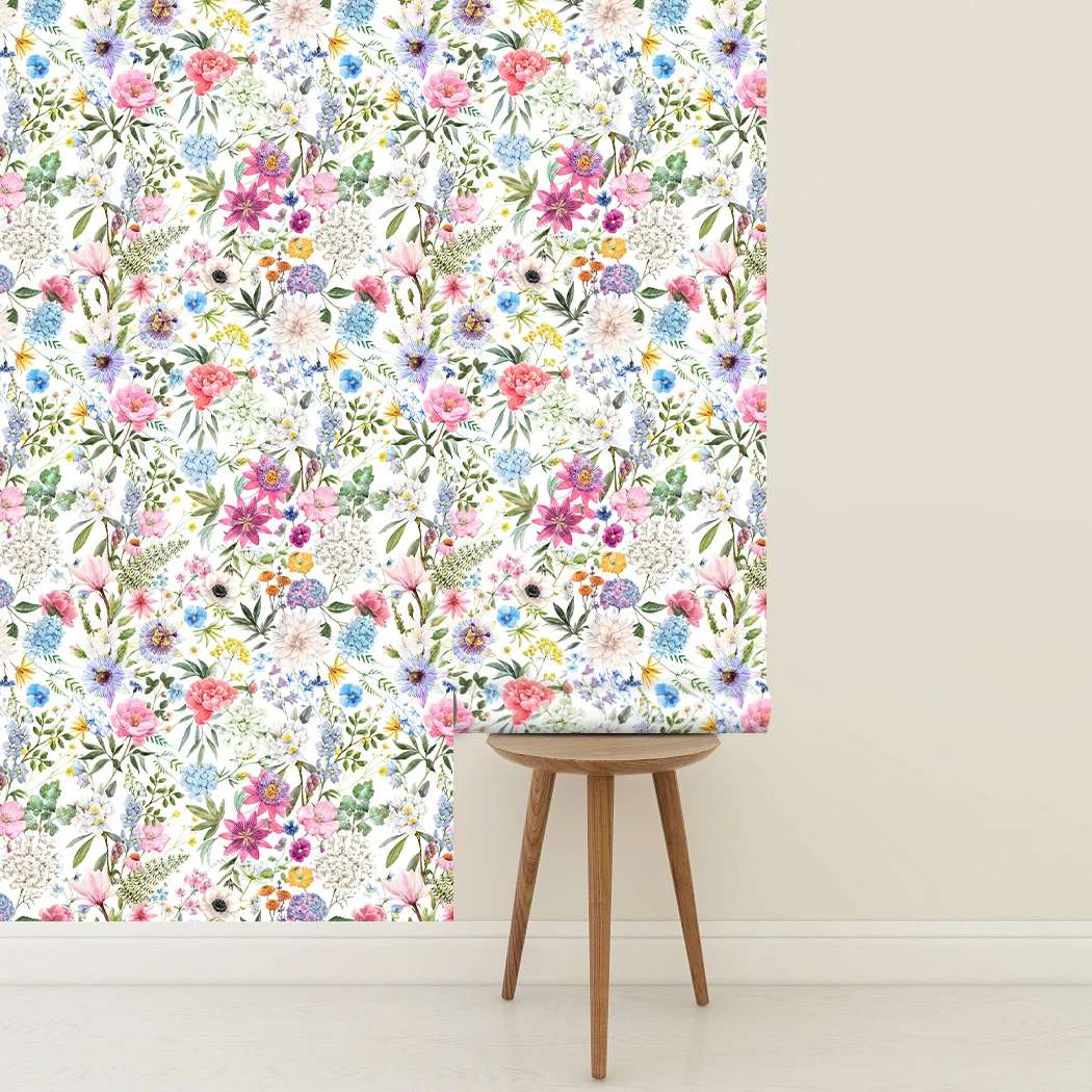 Product : Waterproof Multicolor Flowers Wallpaper Self Adhesive