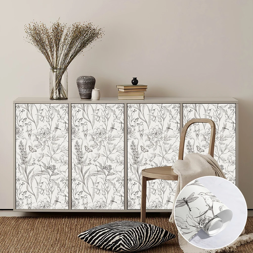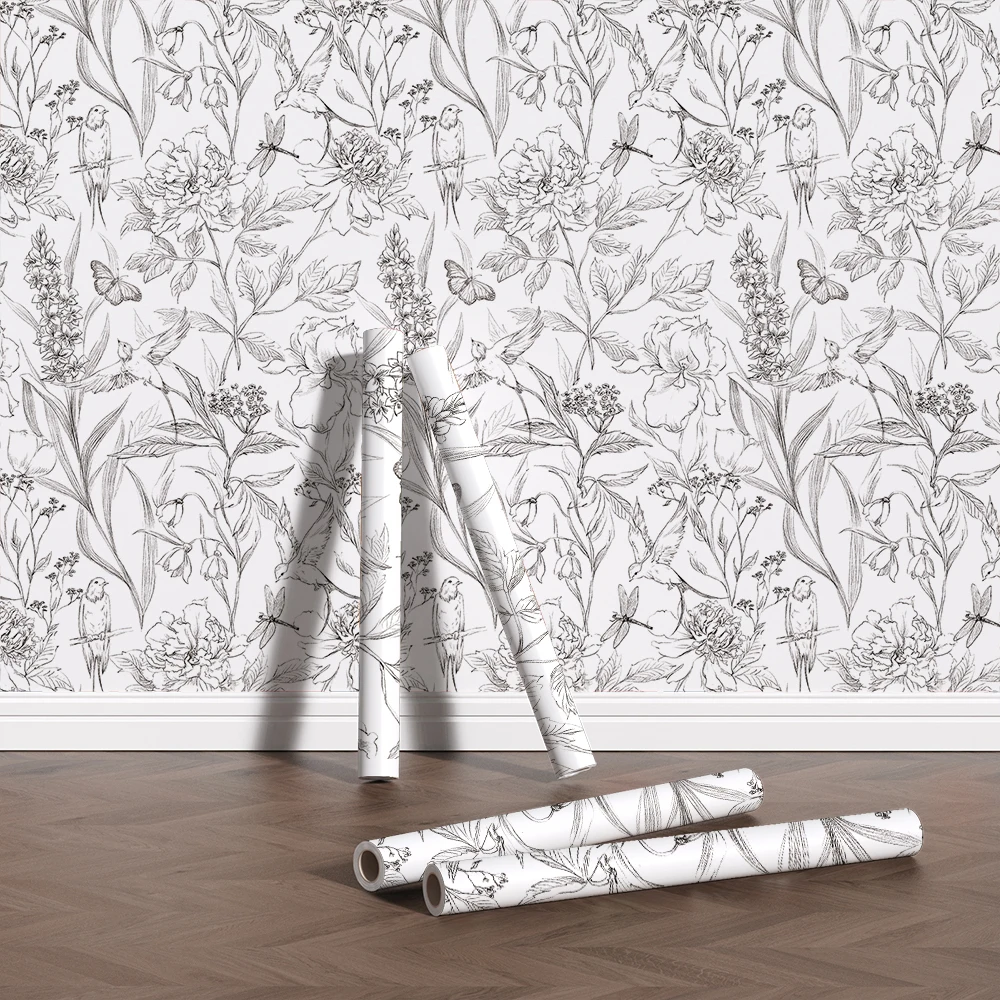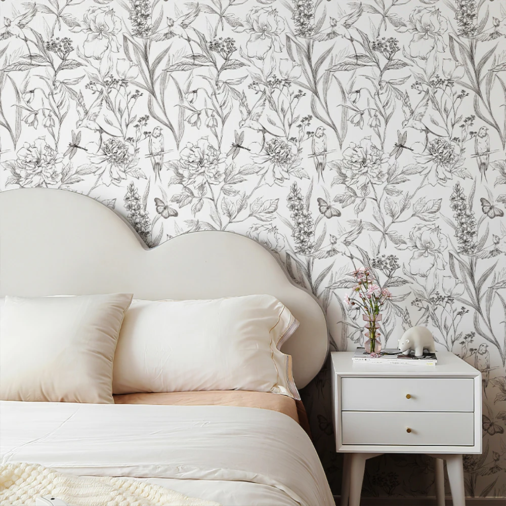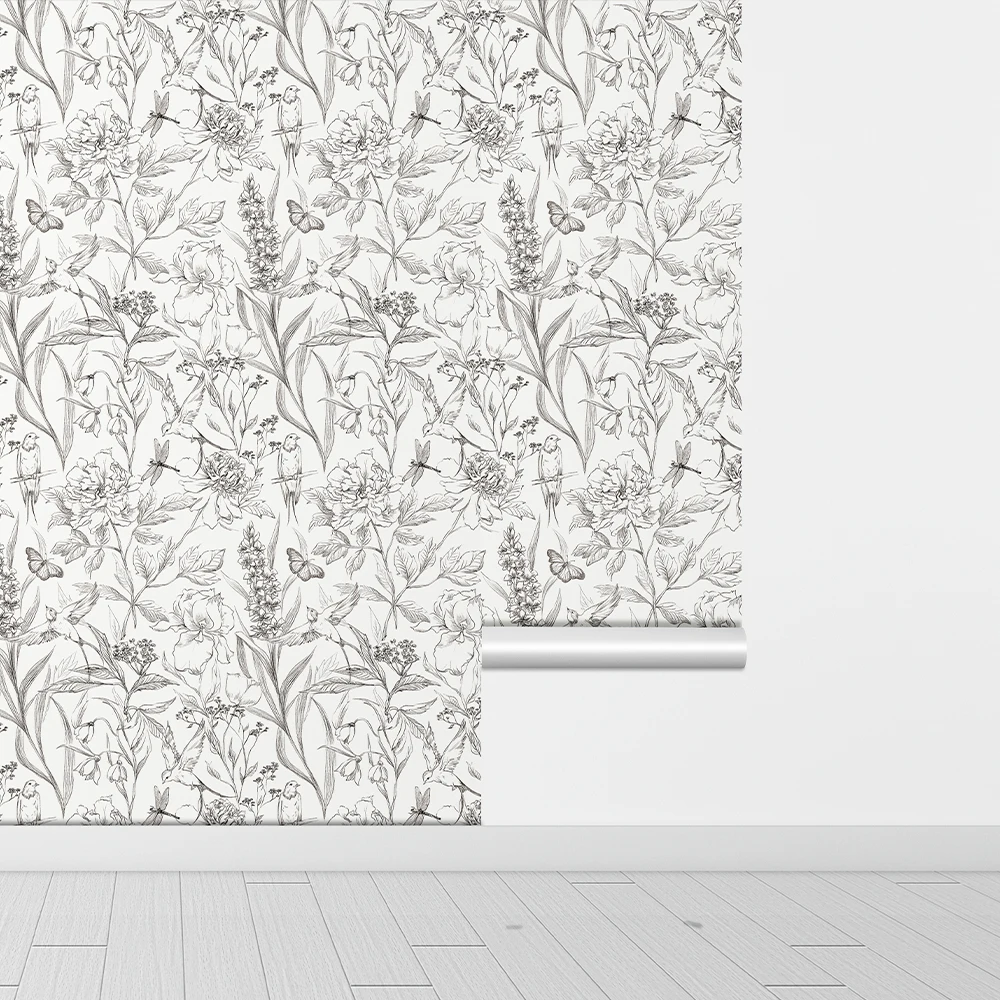 Plain Sketch Flowers Peel and Stick Wallpaper