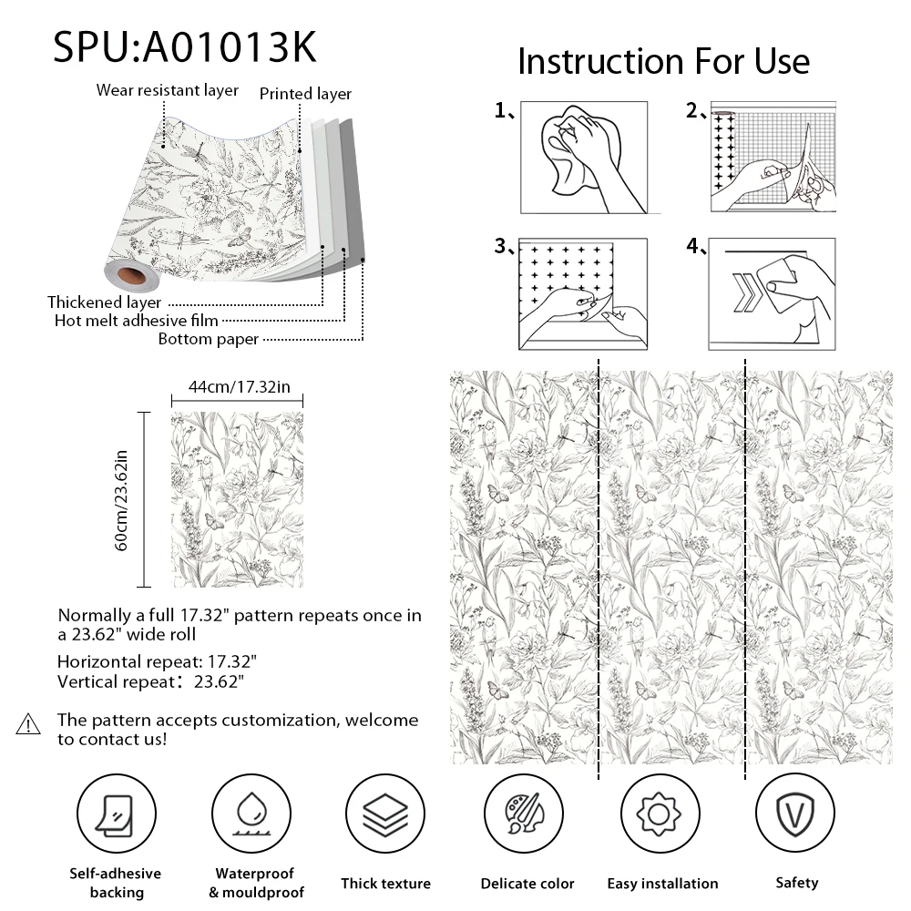 Material: Vinyl PVC Self adhesive Wallpaper