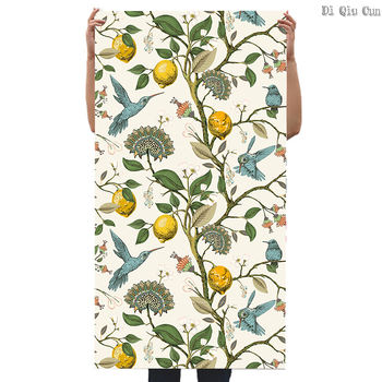 HaoHome Peach Tree Peel and Stick Wallpaper Green Wallpaper Modern Flower & Bird Waterproof Removable Self Adhesive Wallpaper