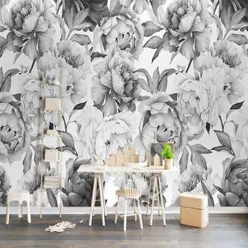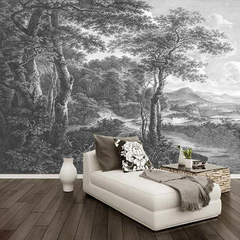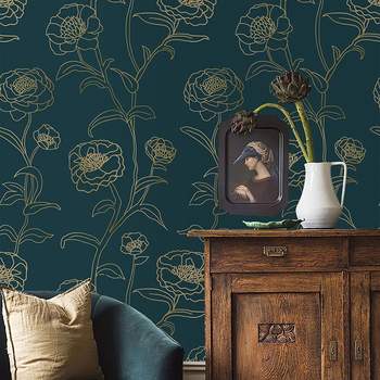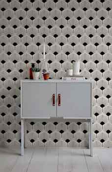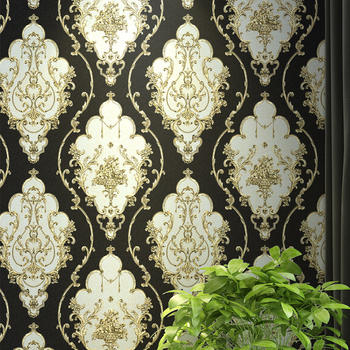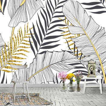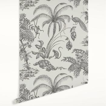 Black and Coffee Grey Art Deco Palms Wallpaper