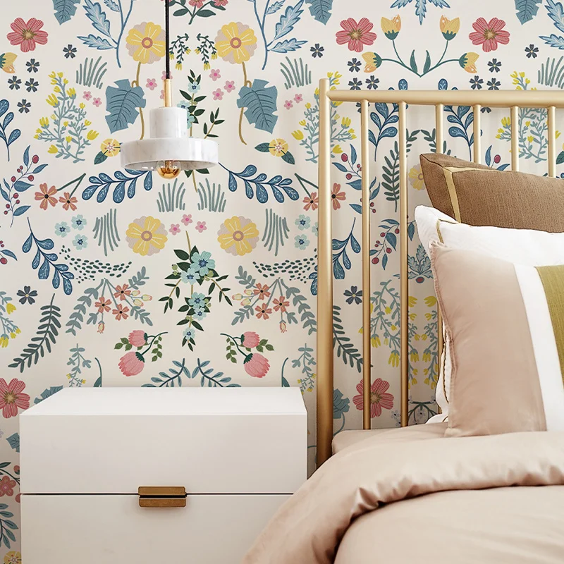 2. Apply Peel-Stick Wallpaper to the wall, beginning in the corner. (Do not peel all the backing all at once, peel off a few inches at a time, slowly stick it to the wall, and then continue to peel off a little more)
