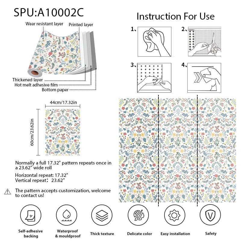 Pvc Self Adhesive Waterproof Decorative Wallpaper
