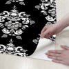 2. Apply Peel-Stick Wallpaper to the wall, beginning in the corner. (Do not peel all the backing all at once, peel off a few inches at a time, slowly stick it to the wall, and then continue to peel off a little more)
