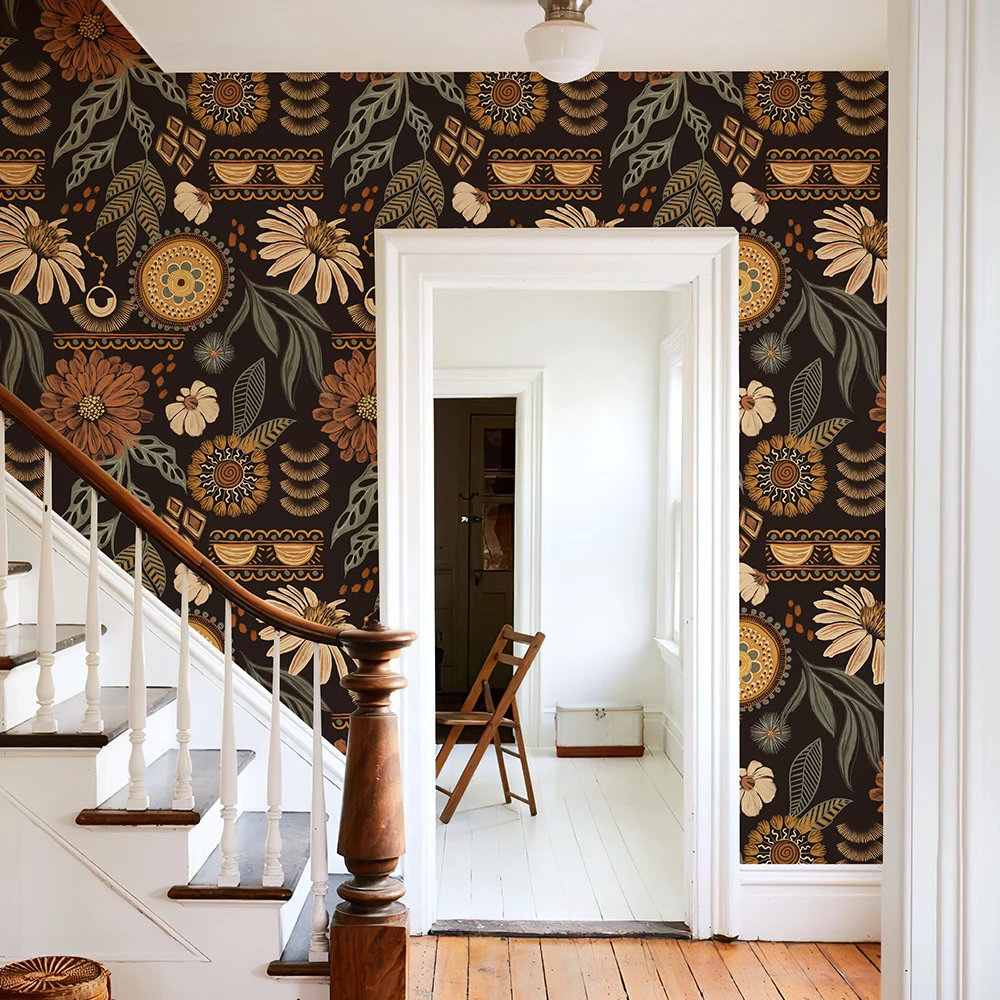 2. Apply Peel-Stick Wallpaper to the wall, beginning in the corner. (Do not peel all the backing all at once, peel off a few inches at a time, slowly stick it to the wall, and then continue to peel off a little more)