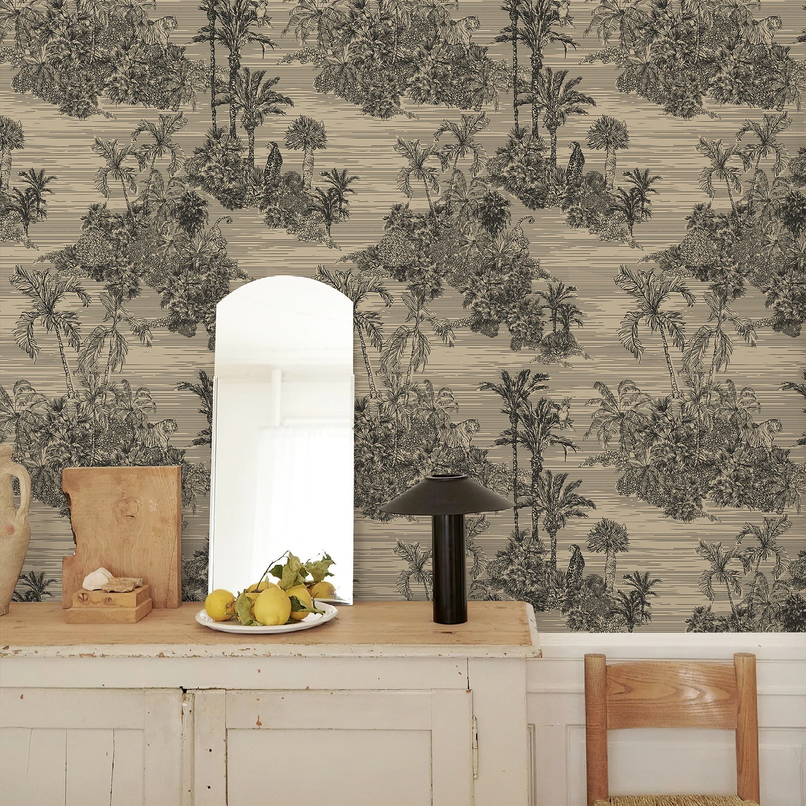 2. Apply Peel-Stick Wallpaper to the wall, beginning in the corner. (Do not peel all the backing all at once, peel off a few inches at a time, slowly stick it to the wall, and then continue to peel off a little more)