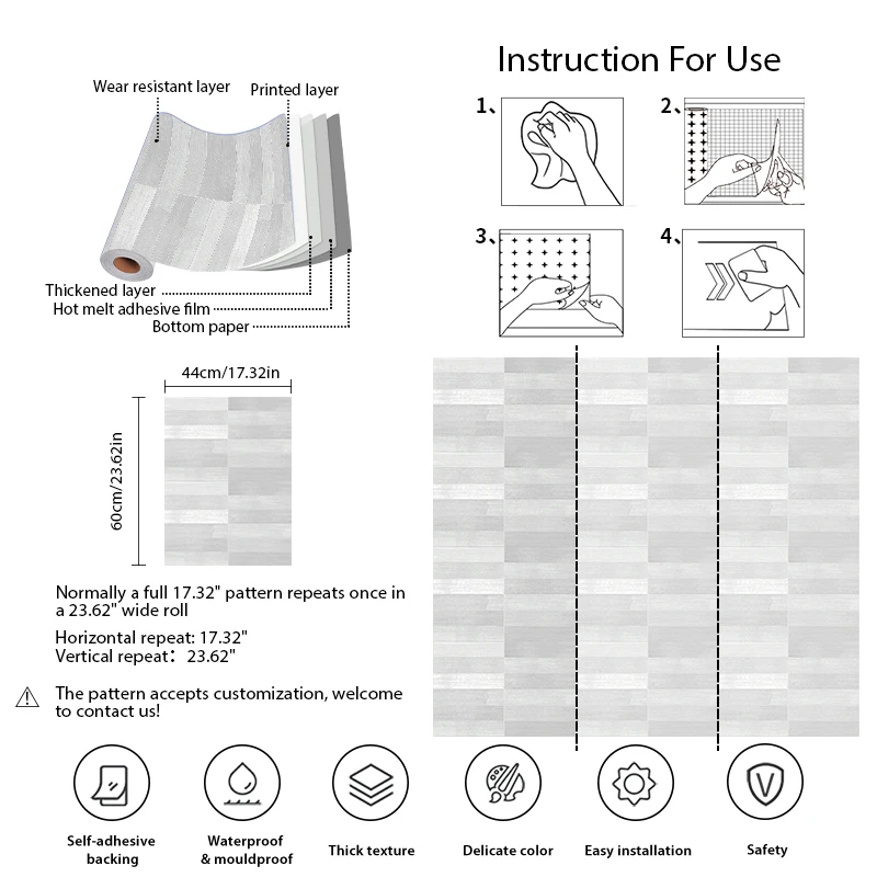 Material: Vinyl PVC Self adhesive Wallpaper