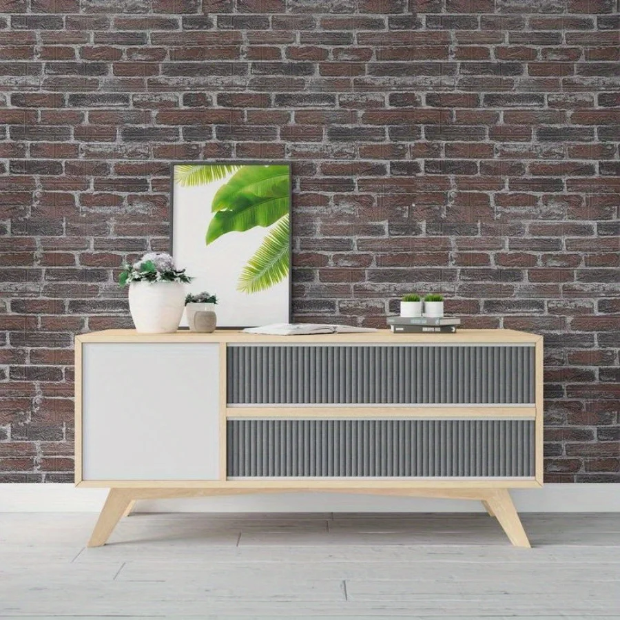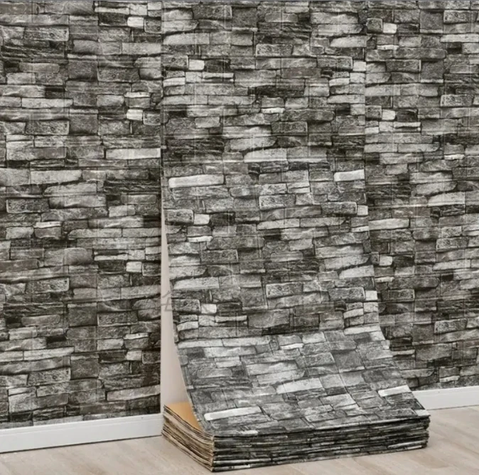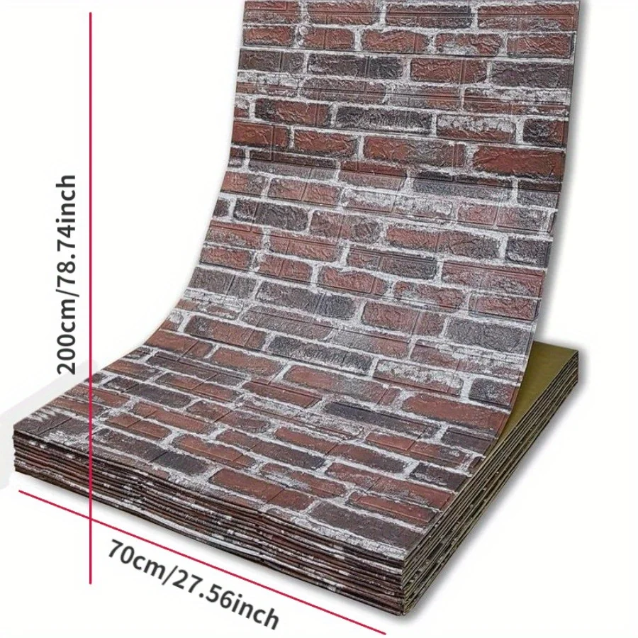 2m 3D Retro Grey Red Wall Stickers Brick Stickers Collision TV Wall Waterproof Self Adhesive Home Decoration Wall Decoration