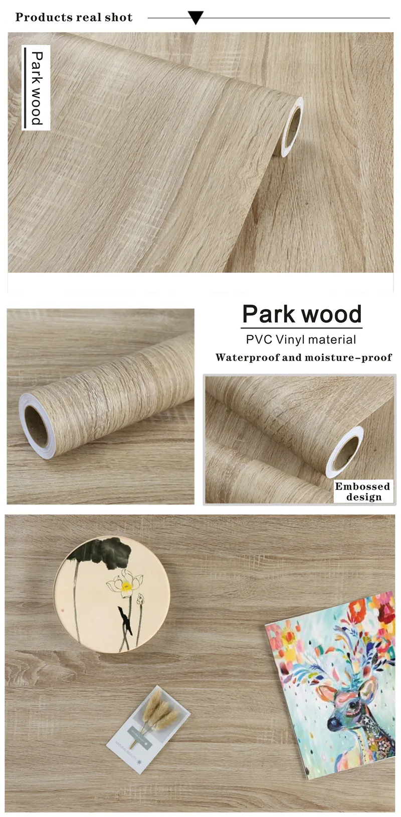 PVC Waterproof Removable Wood Grain Stickers Self-Adhesive Wallpaper Wardrobe Cabinet Table Furniture Renovation Decor