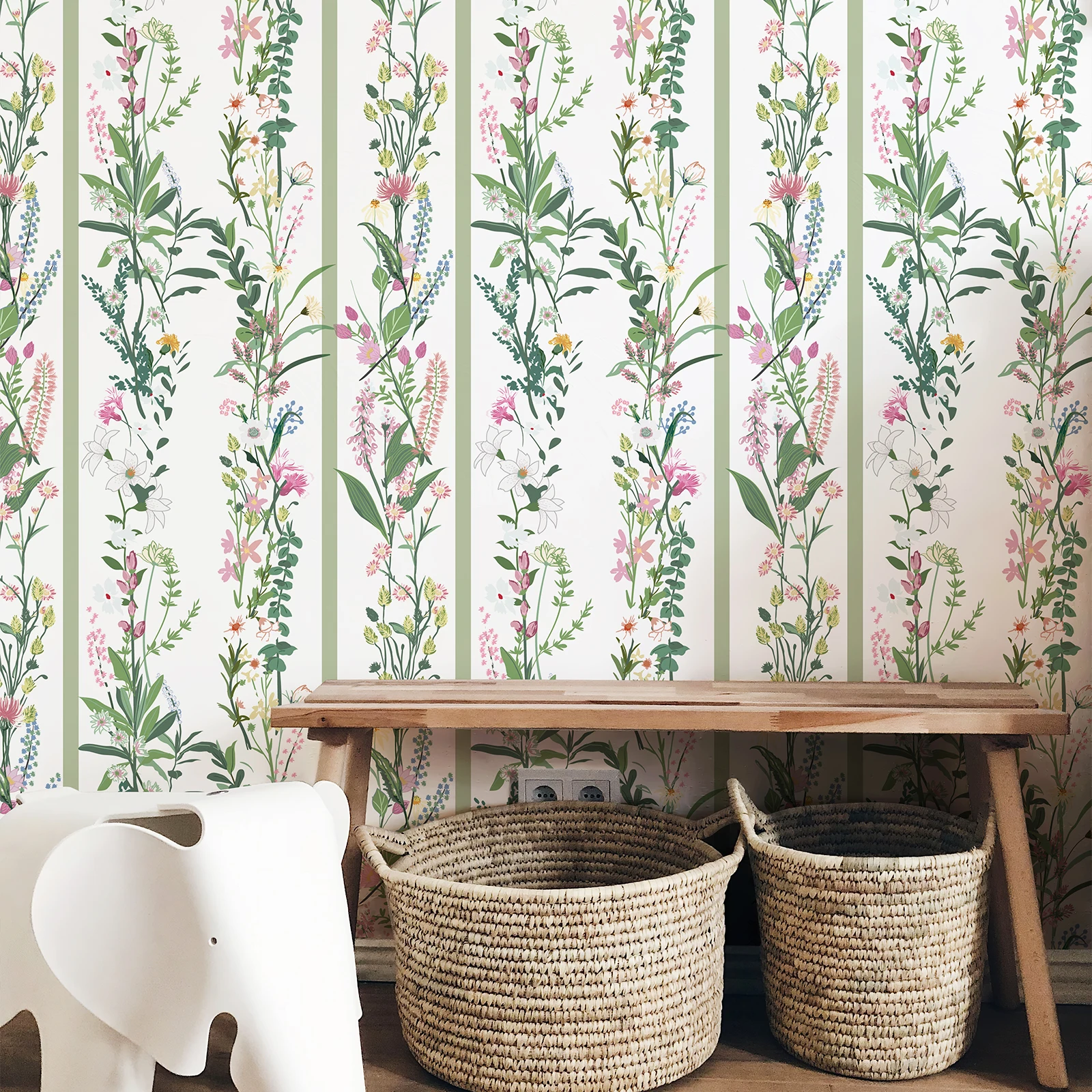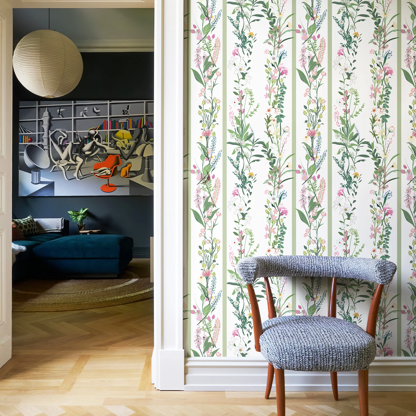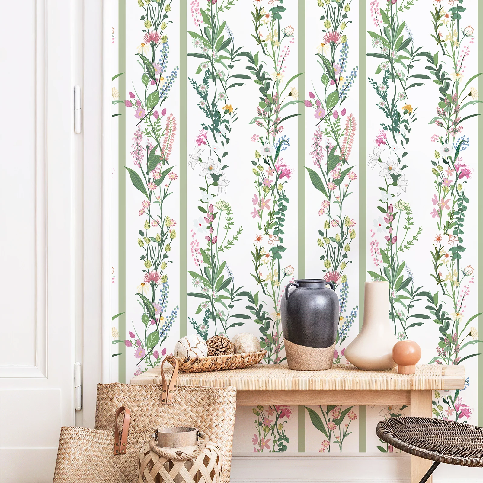 2. Apply Peel-Stick Wallpaper to the wall, beginning in the corner. (Do not peel all the backing all at once, peel off a few inches at a time, slowly stick it to the wall, and then continue to peel off a little more)