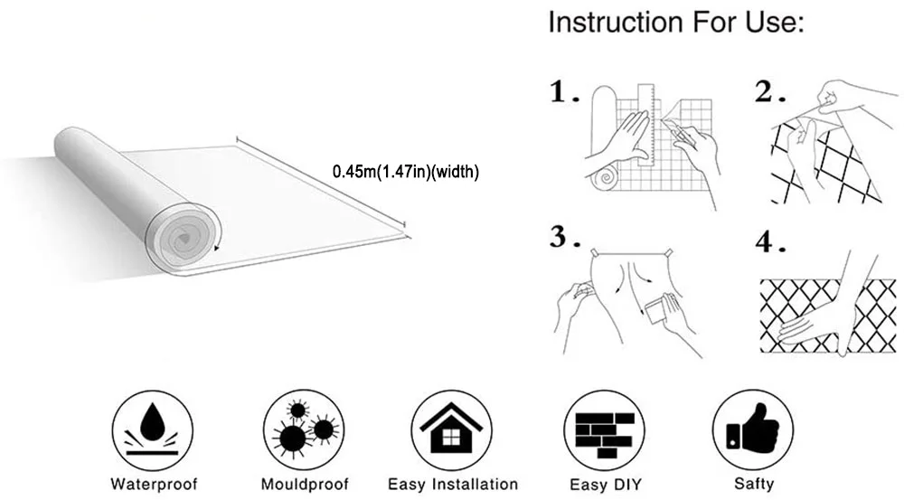 (Cut the required size according to the table on the back of the wallpaper, which is 1cm-15cm larger than the actual surface size after cutting.)