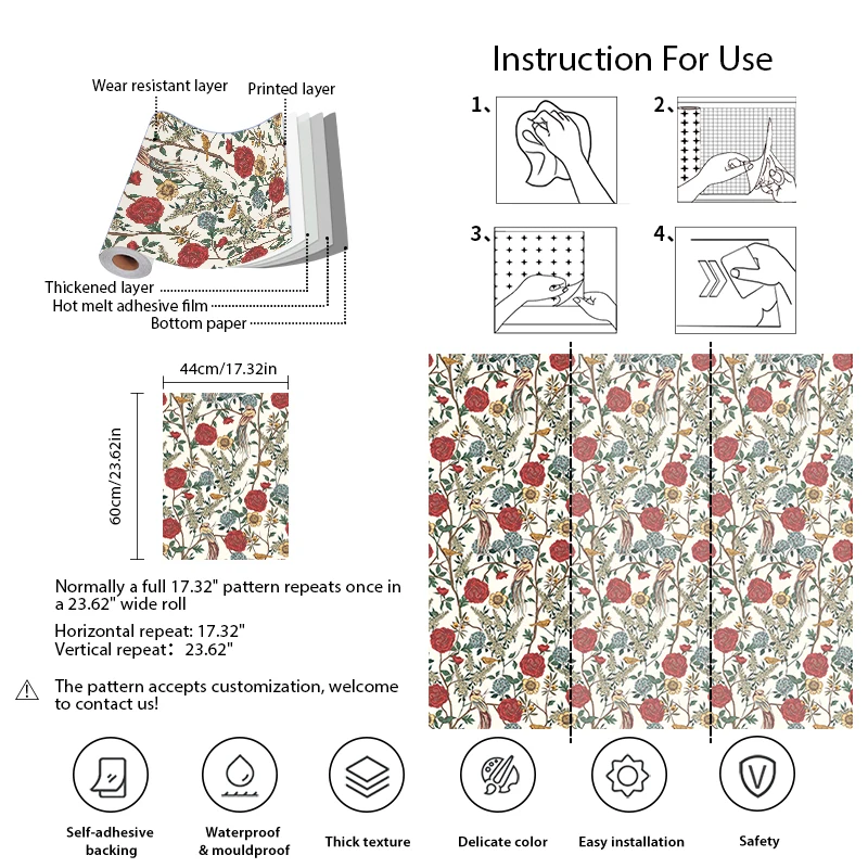Material: Vinyl PVC Self adhesive Wallpaper