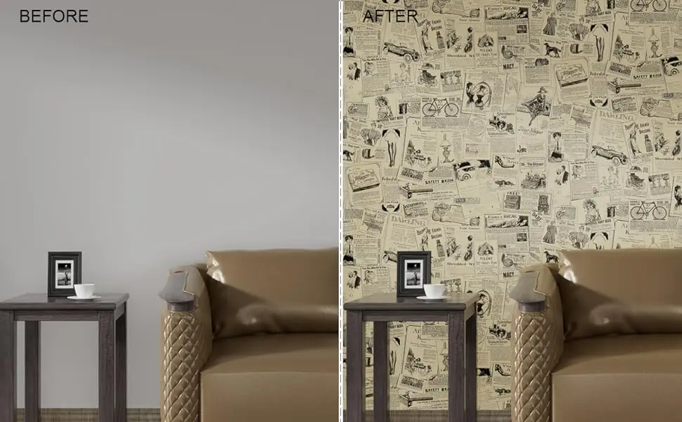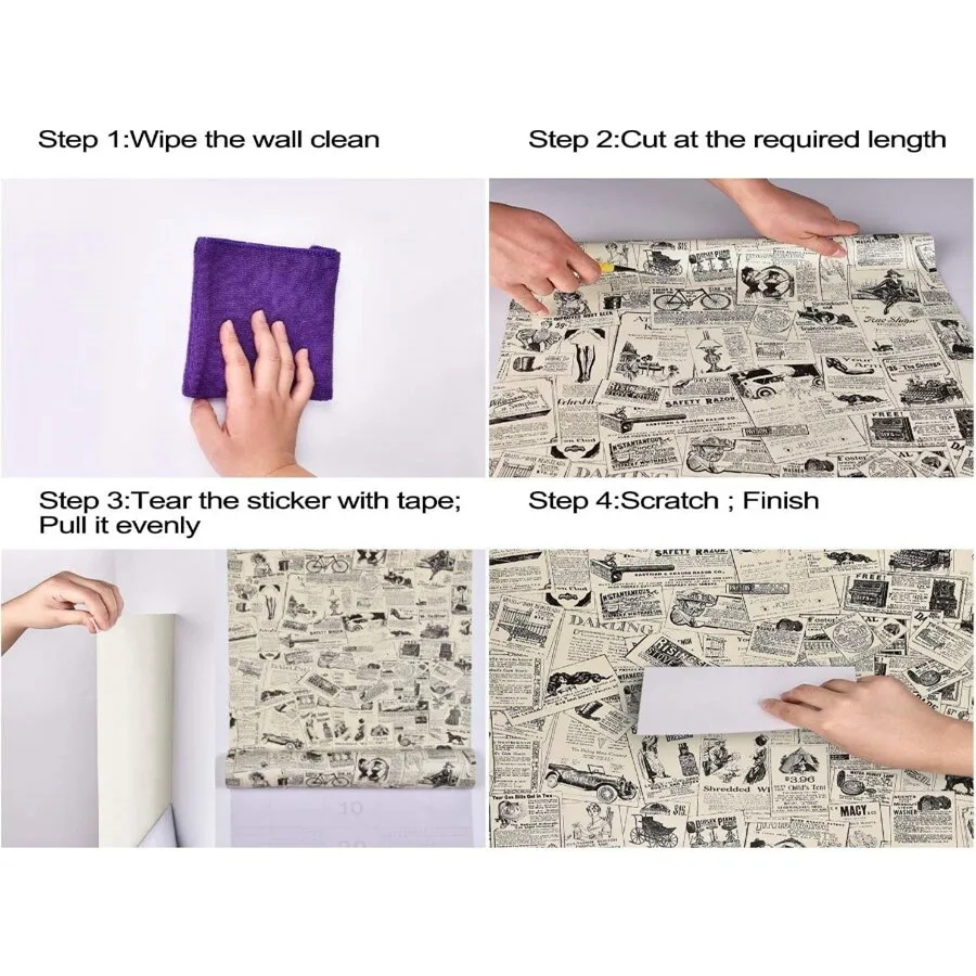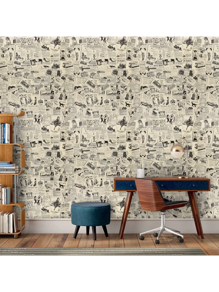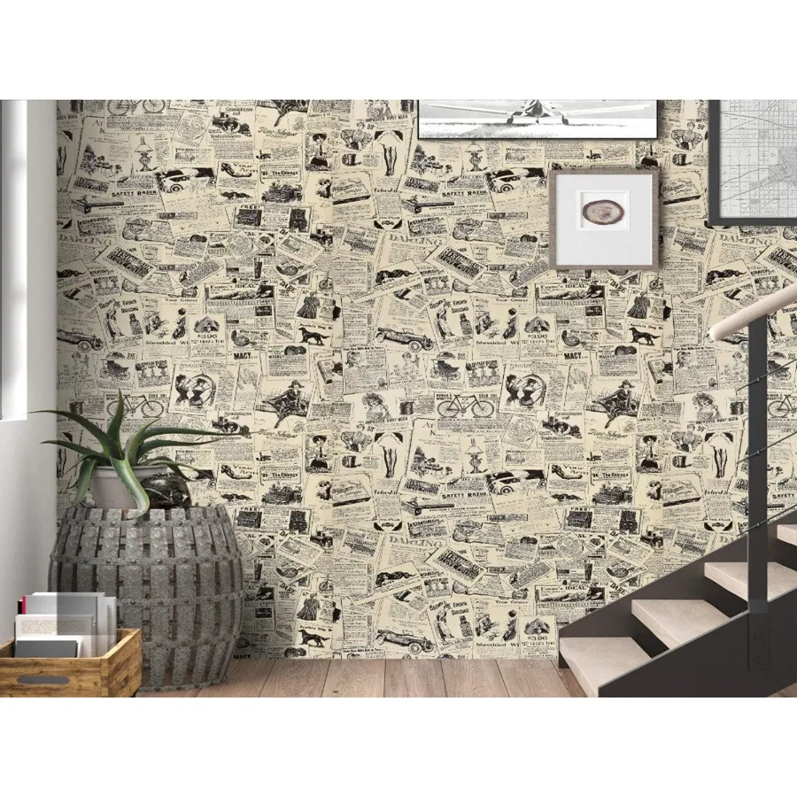 Wallpaper Peel and Stick Newspaper Self Adhesive Vinyl Contact Paper Vintage Removable Roll for Renters Decorate Closet Cabinets